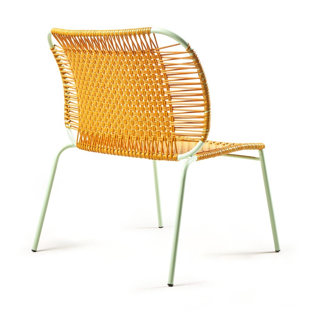 La chaise lounge basse Cielo miel & menthe convient parfaitement à un usage intérieur ou extérieur grâce à sa structure légère en acier et son cordage en plastique recyclé. La collection Cielo est fabriquée artisanalement à Santa Marta en Colombie, le long de la côte Caraïbe. Les artisans expérimentés tissent à la main les fils de plastique recyclé selon une technique traditionnelle Colombienne, en y apportant une touche colorée et originale. Imaginée par le designer Sebastian Herkner, cette collection est une véritable invitation au voyage, et également une formidable aventure humaine.