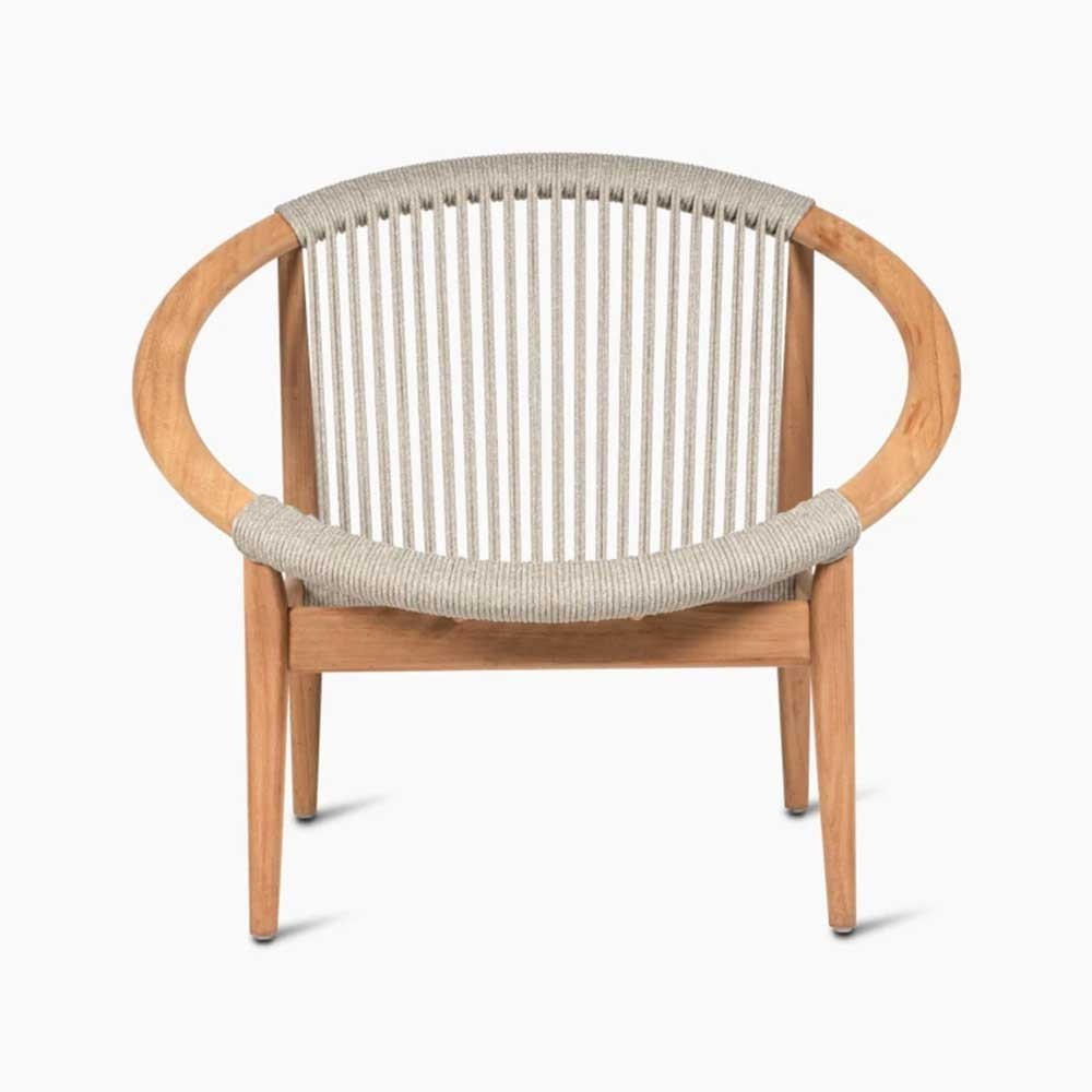 - Corde acrylique sur un cadre en teck non traité.