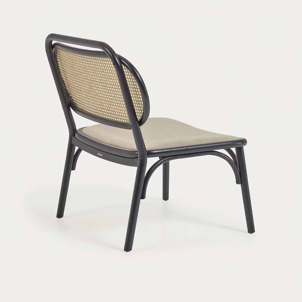 Le fauteuil Doriane est une pièce artisanale faite en bois de chêne et rotin tressé à la main, avec revêtement effet lin hydrofuge. Parfait pour un salon tendance avec un look naturel grâce à son design classique revisité.