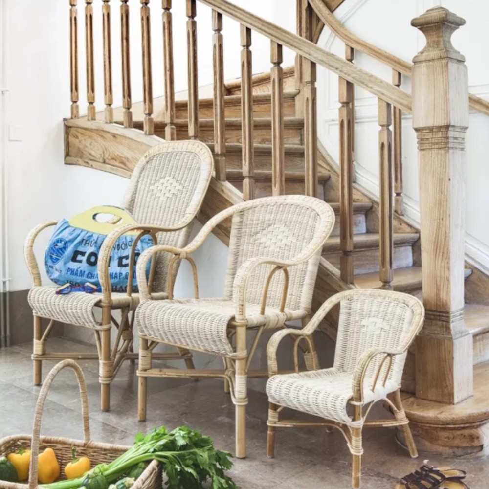 Le fauteuil en rotin Marcel, présenté ici dans sa version à haut dossier, incarne l’élégance intemporelle du rotin à la française. Sa silhouette emblématique, qui s’est répandue dans les villes comme dans les campagnes depuis plus d’un siècle, lui vaut affectueusement le surnom de fauteuil "grand-père".