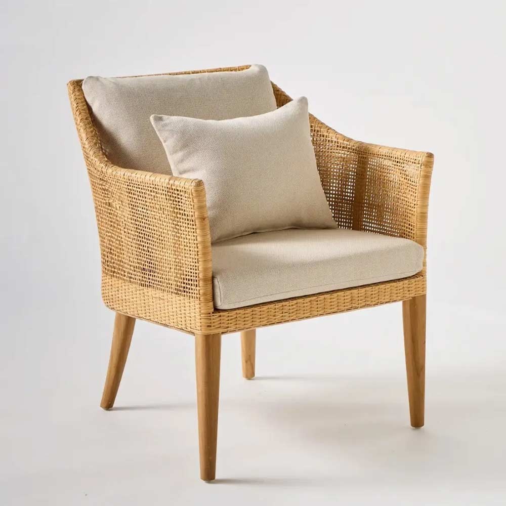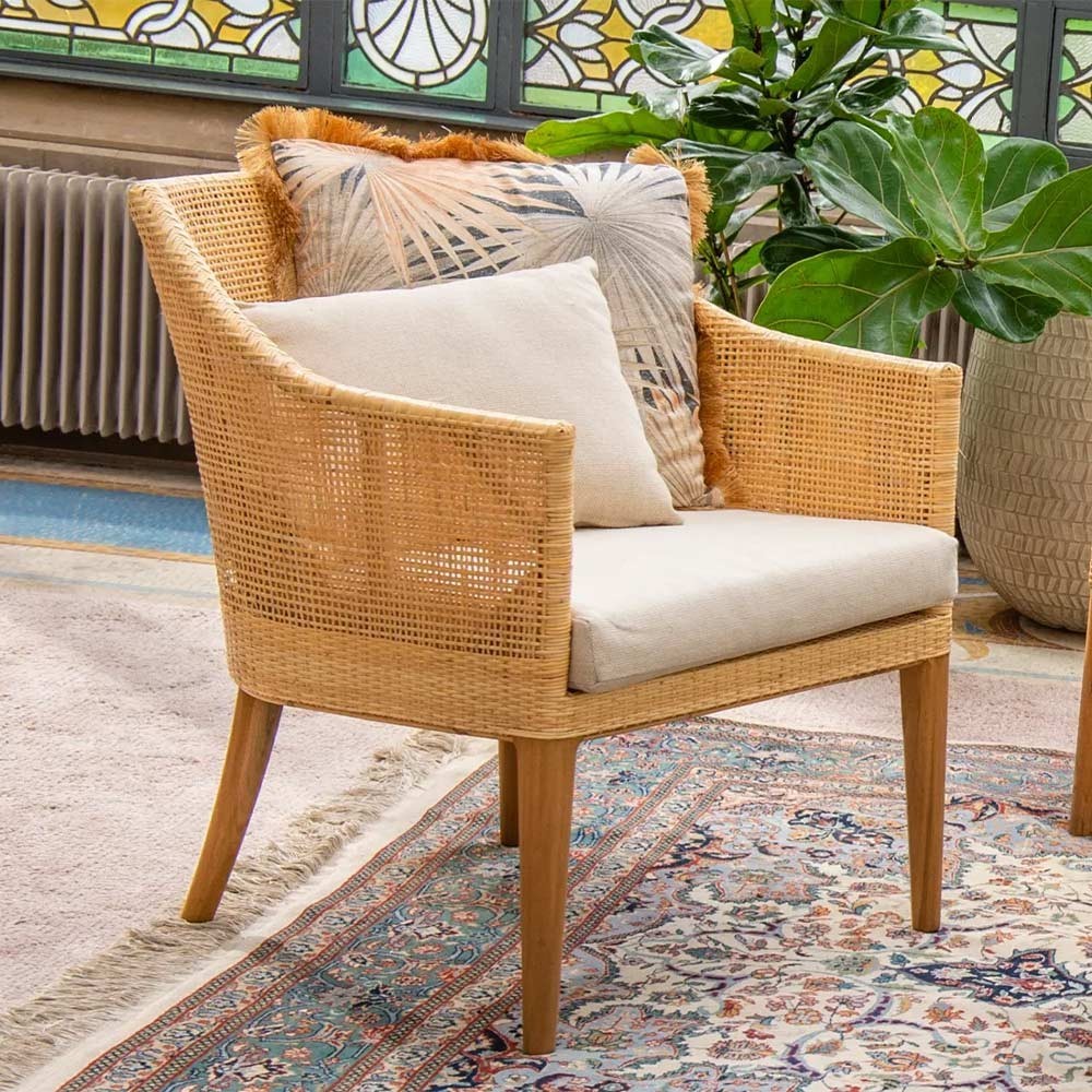 Ce fauteuil en rotin Saigon allie la robustesse grâce à sa structure en teck naturel et le raffinement grâce à son tissage ajouré en éclisse de rotin. Ce fauteuil est le résultat d'un beau travail entièrement fait à la main. A utiliser autour d'une table, face à un bureau, en siège d'appoint au salon, dans une véranda, cette chaise en rotin Saigon apportera un côté naturel et contemporain à votre intérieur.