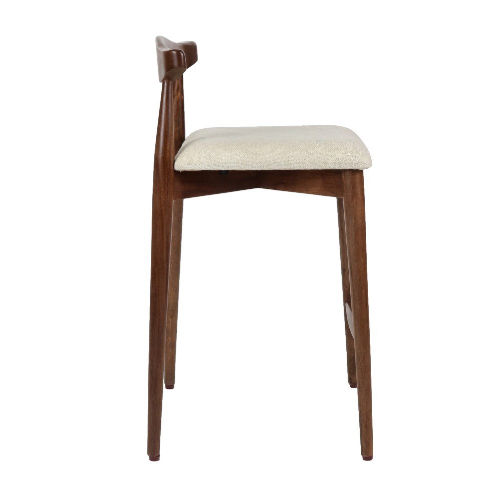 La collection Mandela se décline en trois formats ,chaise, tabouret de bar H65 cm et tabouret de bar H75 cm, ainsi qu’en deux harmonies de couleurs : bois noyer avec coussin écru, ou bois noir avec coussin beige.