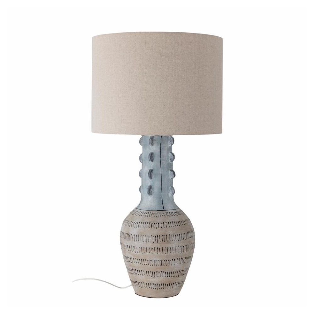 Apportez du caractère et de l'élégance à votre intérieur avec le lampadaire Gadiela de Bloomingville. Son pied en céramique, orné d’un motif peint à la main dans une glaçure bleu doux, diffuse une atmosphère sereine et chaleureuse. Les détails graphiques finement gravés lui confèrent une allure sculpturale, faisant de ce luminaire une pièce maîtresse idéale pour un salon ou un coin cosy de la chambre.