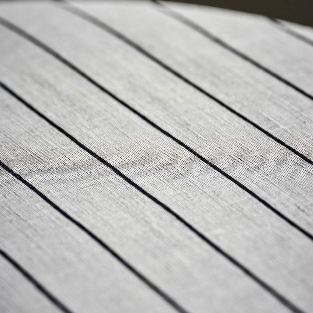 abat-jour blanc cassé bordé de rayures noires, alliant fonctionnalité et élégance.