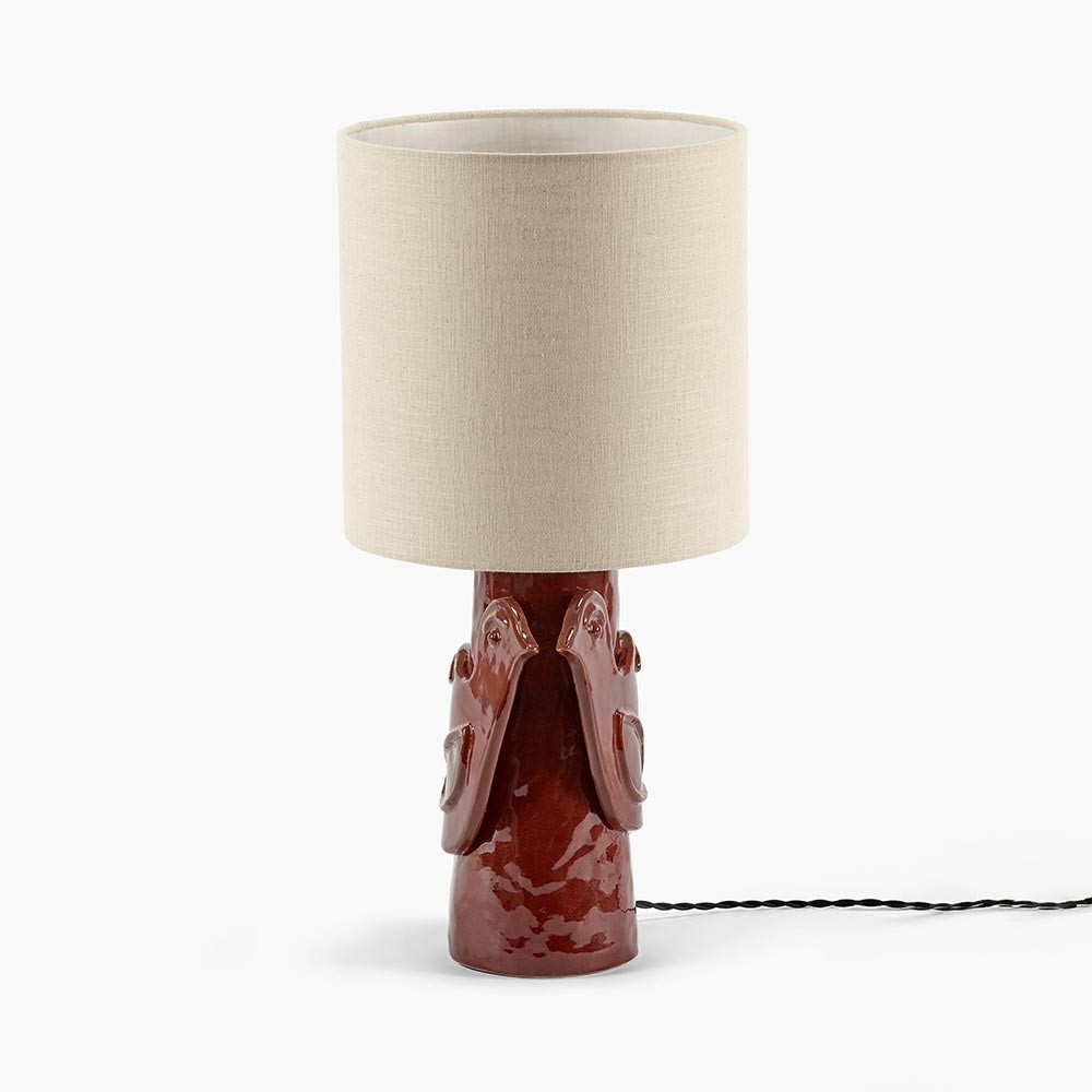 La lampe d'ambiance Paloma, au style classique, présente un pied accrocheur avec un abat-jour en lin neutre. Ornée d'une colombe modelée à la main, la lampe évoque les esquisses de Picasso et rend hommage à la fille du peintre, Paloma. Les trois couleurs choisies par Marie pour la céramique - brun foncé, rouge chaleureux et couleur naturelle de l'argile avec une glaçure incolore - sont utilisées. Le cordon, enveloppé de tissu torsadé noir ou blanc, ajoute une touche élégante à la lampe.