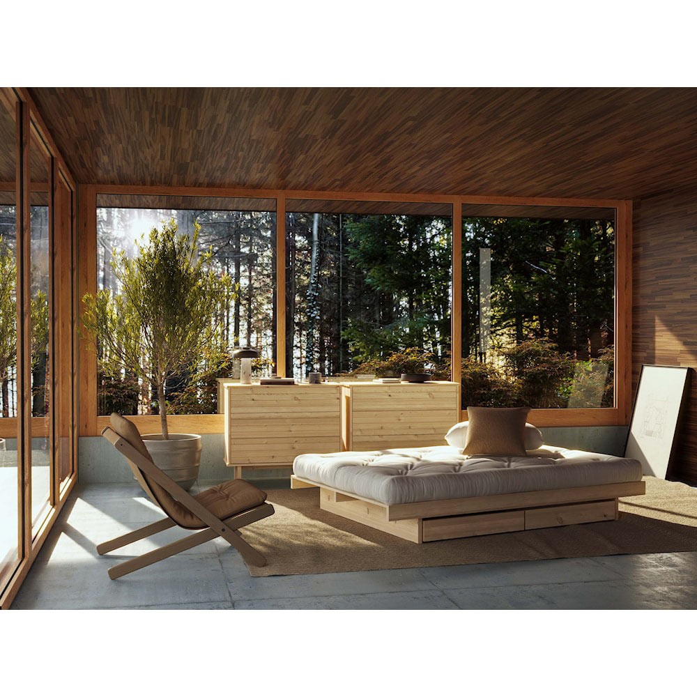 Petit salon, maison d'été, petit appartement ou chambre ? Le lit Kanso, sans compromettre l'esthétique, est là à la rescousse ; en ajoutant quatre tiroirs sous le lit Kanso, vous créez instantanément plus d'espace. Le lit Kanso est livré avec ou sans tiroirs.