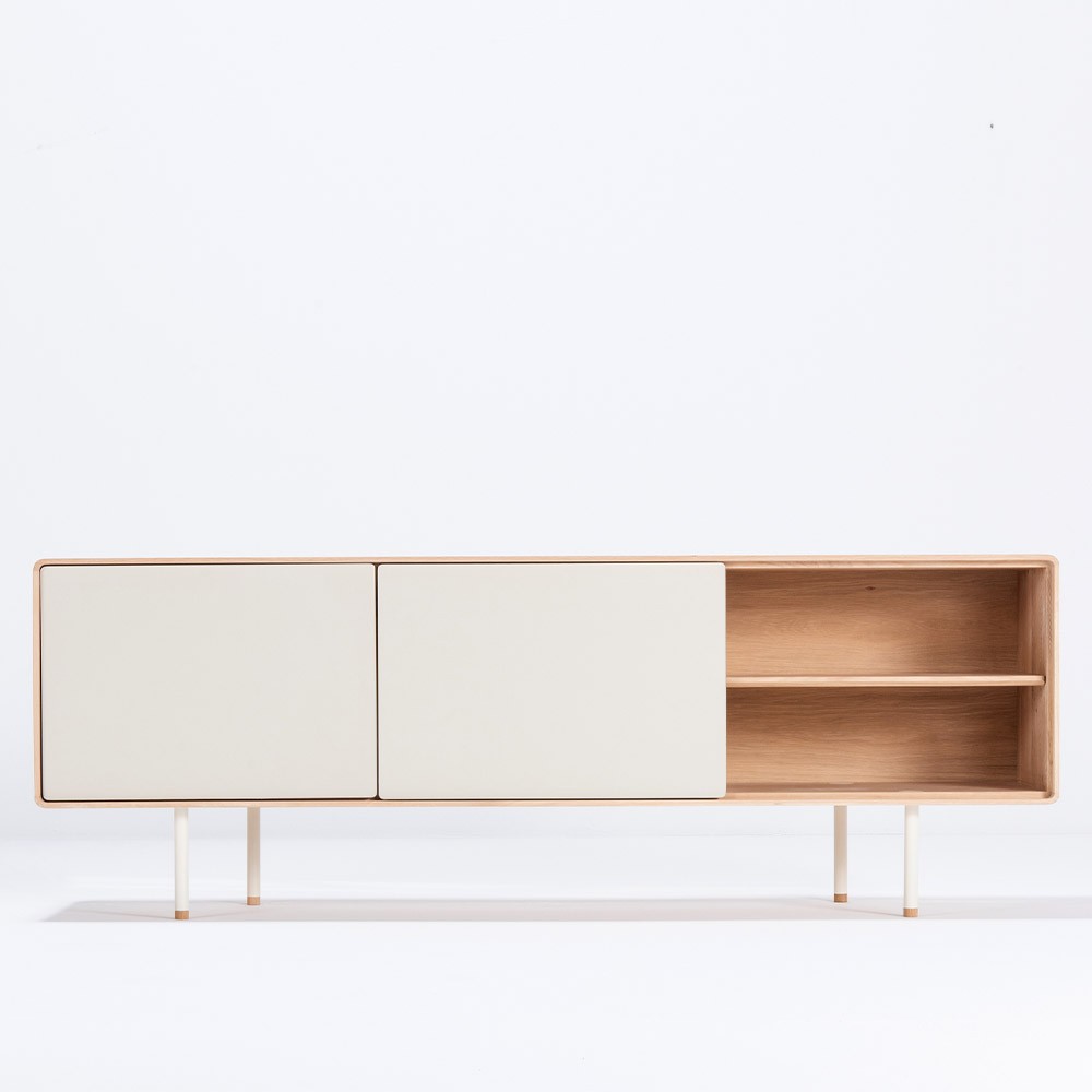La gamme de meuble de rangement Fina par Gazzda n'a pas fini de vous surprendre ! Craquez pour ce somptueux meuble TV 180 Fina. Son coloris chêne & crème apportera douceur et confort à votre salon. Aussi pratique qu'esthétique, ce meuble TV vous offre de nombreuses possibilités de rangement, idéal pour y ranger télécommandes, câbles, consoles et jeux vidéo,... Existe aussi en version chêne & noir et en version 150 cm.