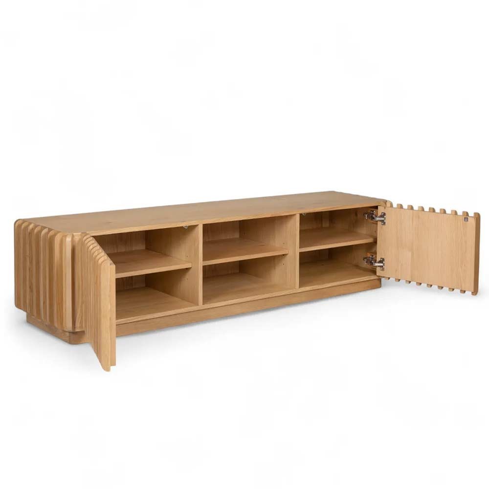 Le meuble TV Eleganty avec 2 niches et 2 portes allie élégance et fonctionnalité dans un design contemporain et raffiné. Conçu en MDF avec une structure en chêne massif et un placage chêne, il met en valeur la beauté naturelle du bois et ses nuances chaleureuses, apportant une touche authentique à votre intérieur. Ses lignes épurées et son style intemporel lui permettent de s’intégrer facilement dans différents univers décoratifs, du moderne au plus classique. Pensé pour le quotidien, il dispose de deux niches ouvertes idéales pour accueillir vos appareils multimédias, ainsi que de deux portes offrant un espace de rangement discret pour organiser vos accessoires. Robuste et durable, ce meuble TV conjugue esthétique et praticité pour sublimer votre espace de vie.