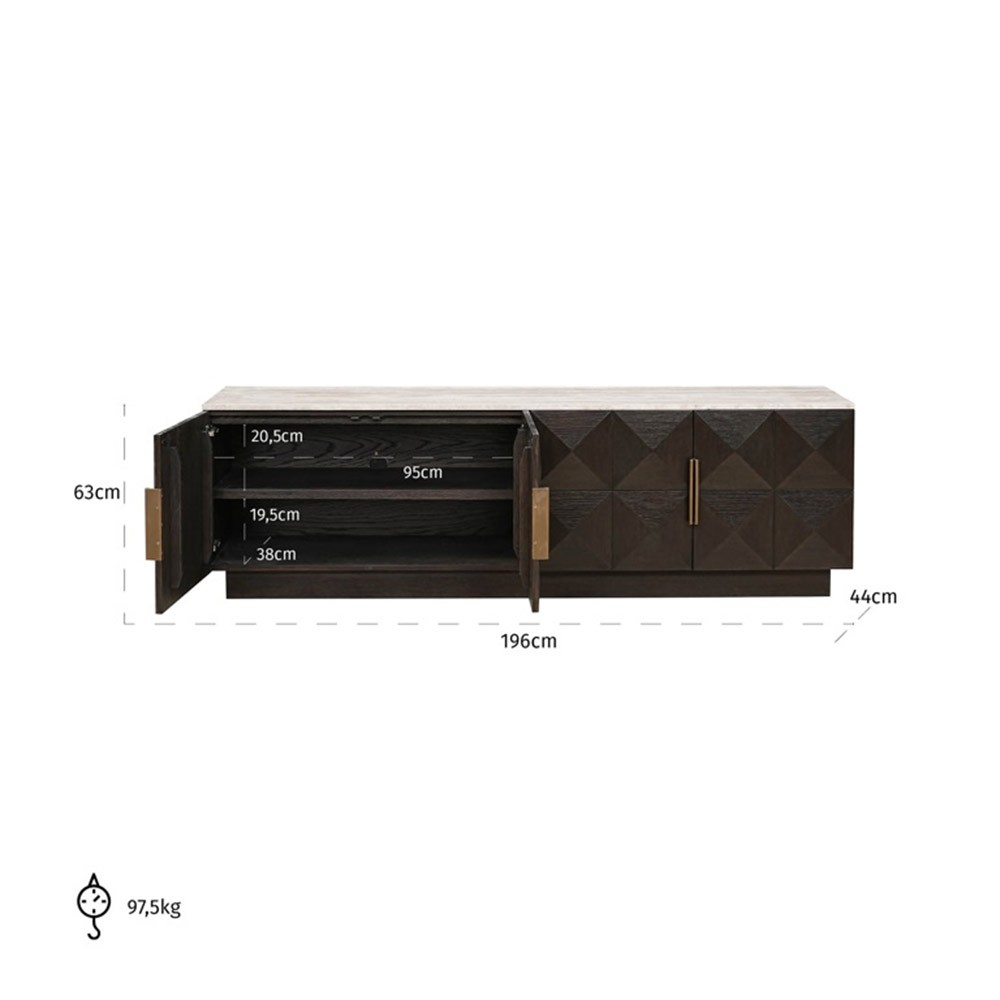 Le meuble TV Claremont 4 portes allie élégance et robustesse avec son placage de chêne et ses matériaux nobles tels que le chêne, la pierre et le bois. Son design raffiné et ses finitions soignées en font un atout intemporel, parfait pour sublimer votre salon tout en offrant un espace de rangement pratique et stylé.