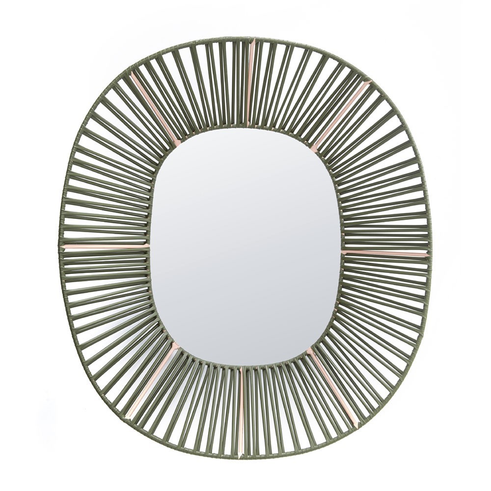 Le miroir ovale Cesta vert olive & chair de ames est original et authentique. Fabriqué à partir de cordes tubulaires en acier et en plastique, il est le fruit du savoir-faire et des méthodes de fabrication ancestrales colombiennes.