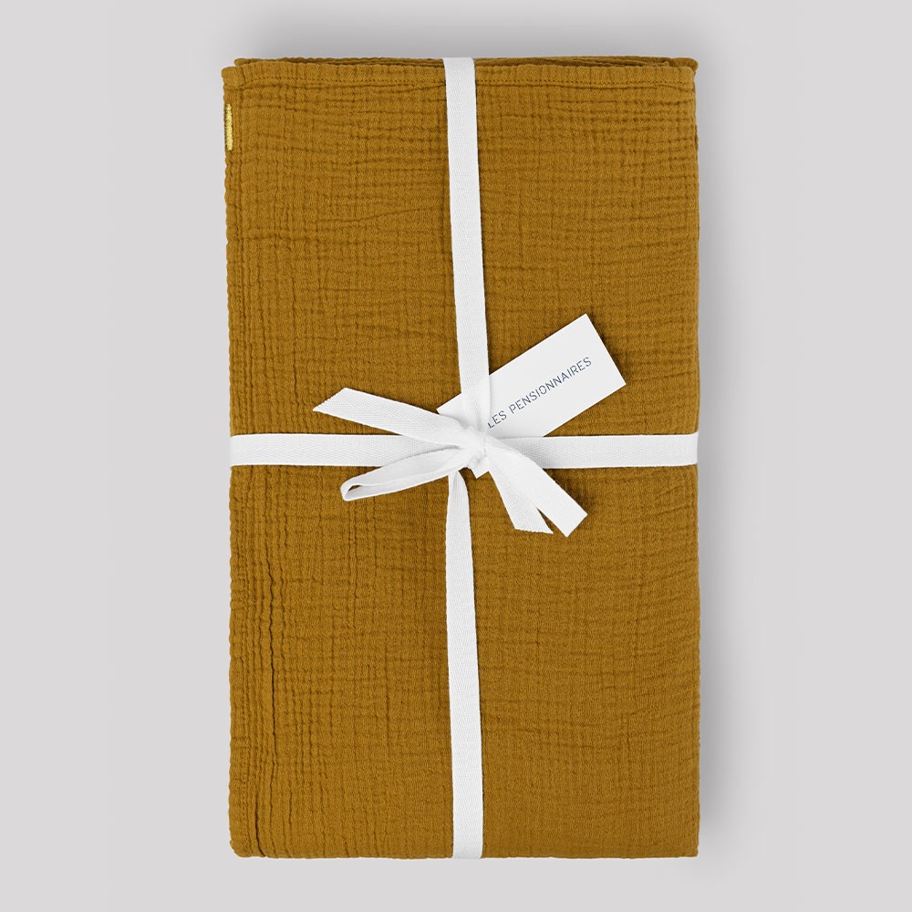 Rien ne vaut une table bien dressée lorsque vous recevez amis et famille chez vous ! Avec les nappes en double gaze de coton de la marque Les Pensionnaires, habillez vos tables toute en élégance. Choisissez votre nappe en coloris safran, pour égayer et réchauffer votre table. Disponible en 6 coloris.