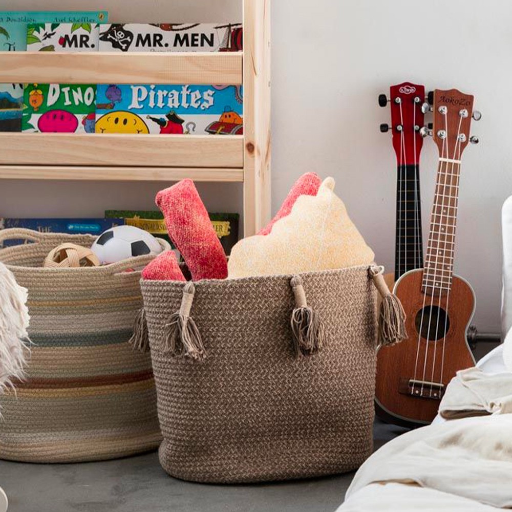 En ce sens, le panier Triplet, proposé par Lorena Canals, est un élément de rangement idéal si vous aimez organiser votre maison avec toutes sortes de paniers. Souple et raffiné, ce panier pourra vous servir au quotidien et se placer n'importe où : dans des casiers pour y placer vos vêtements, dans une étagère pour y ranger vos objets personnels à l'abri des regards, ou encore sur le sol pour y placer des magazines. Ce panier est composé en majeure partie de coton de quelques autres fibres. Comme les autres produits de sa collection, il est reversible.