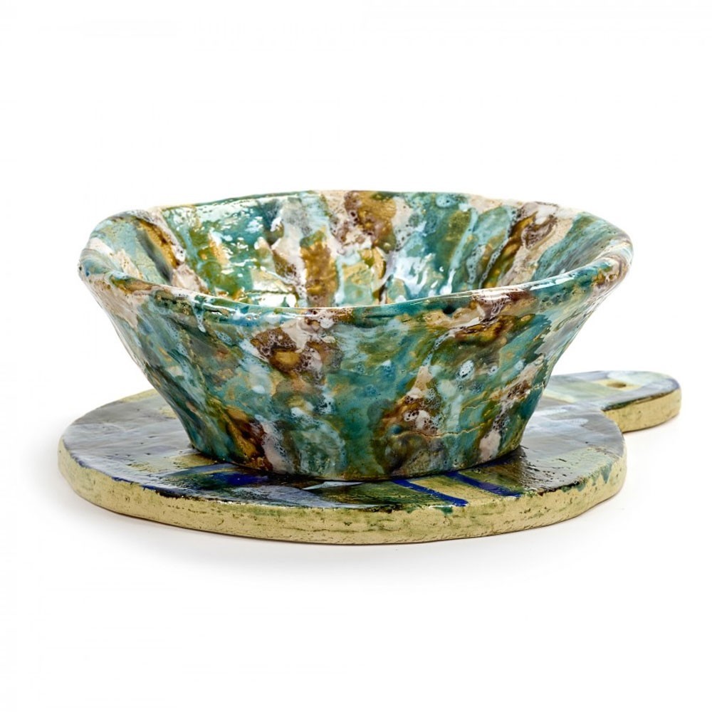 Coupe Sienna de la collection Carnet de voyages de Bela Silva pour Serax. Chaque saladier, plat ou pot de la collection « Carnet de voyages » de Bela Silva pour Serax renvoie un écho indéniable du passé. Celui-ci est présent aussi bien dans les couleurs de la terre cuite émaillée que dans la conception robuste. Le style est « cosmopolite », une fusion sans limites des nombreux voyages de Bela à travers le monde. « Carnet de voyages » de Bela Silva pour Serax, c’est l’audace et l’excentricité d’un mélange éclectique et géographique qui repousse les frontières du temps.