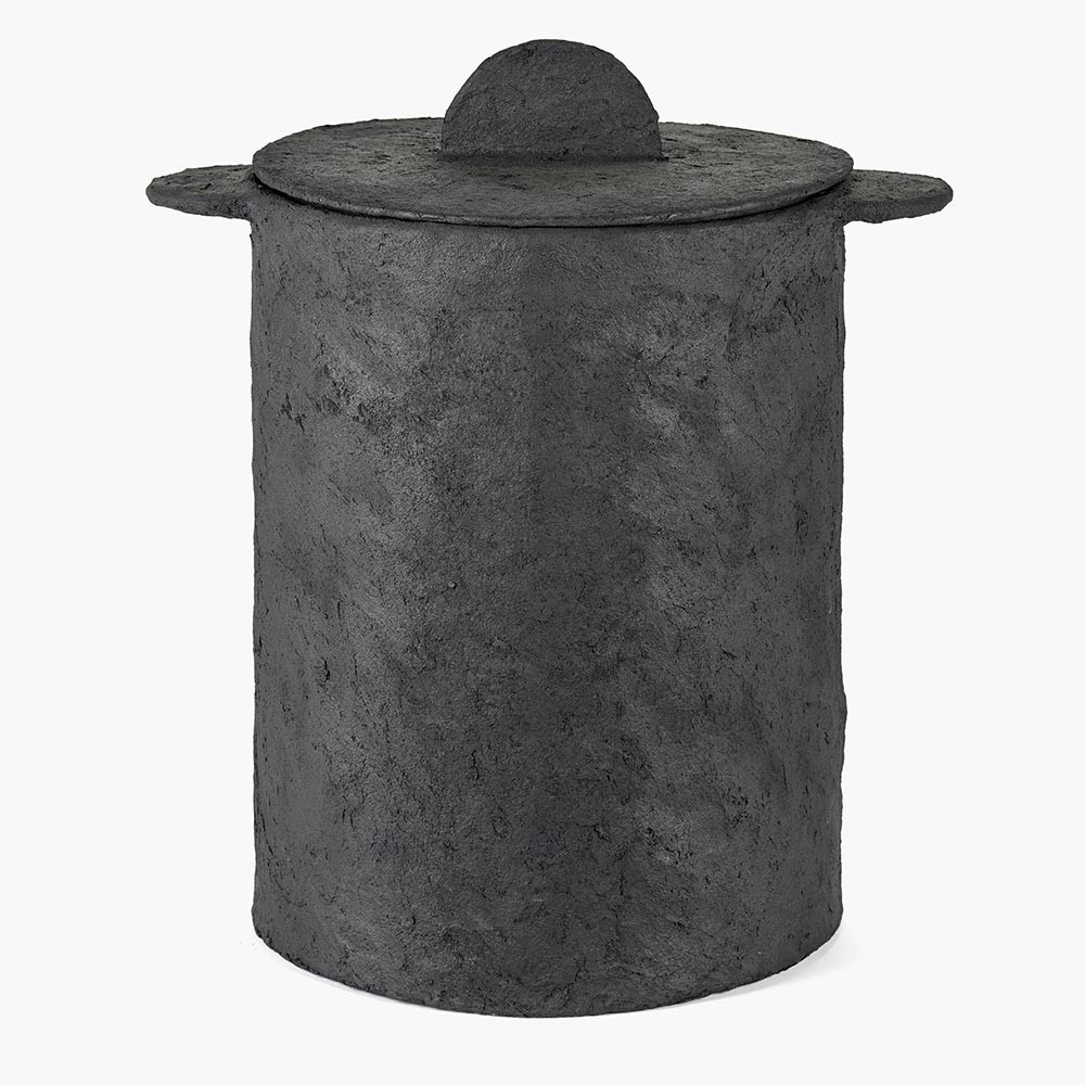 Panier avec couvercle + sac en lin noir papier mache Earth by Serax