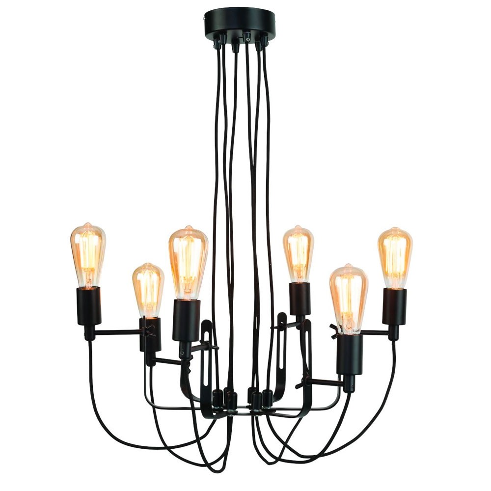 Découvrez la suspension Seattle, joli luminaire au style industriel caractérisé par son alliage de fer et textile. Avec ses six ampoules, cette suspension apportera un éclairage vif, pour un esprit loft très moderne.