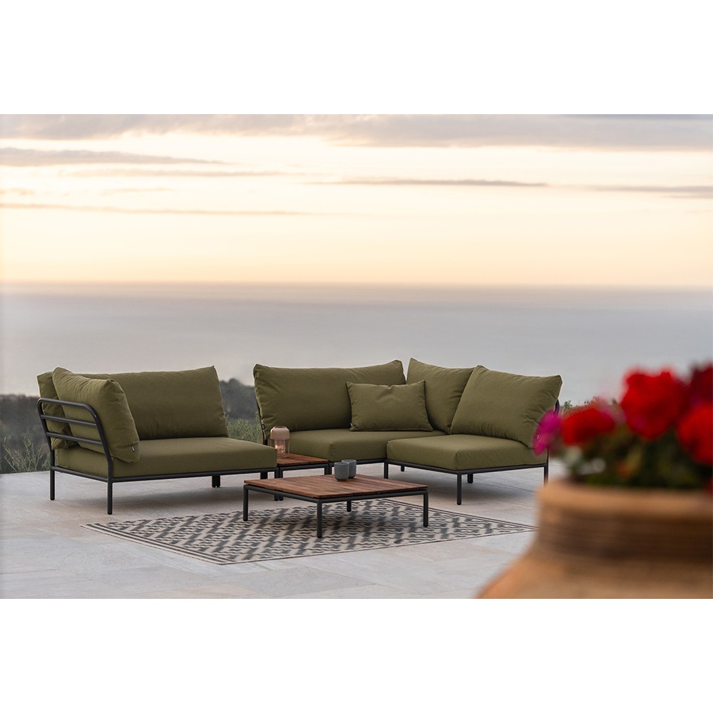 Level de Houe est une collection de mobilier d'extérieur comprenant 2 modules de canapé, une chaise lounge, un pouf et une table basse. Chaque élément de la collection peut être utilisé seul ou combiné avec les autres éléments de la gamme. Vous pourrez ainsi créer un salon d'extérieur modulable en adéquation parfaite avec vos envies ! Les structures design, ergonomiques et épurées des modules contrastent à merveille avec les coussins moelleux et chaleureux.