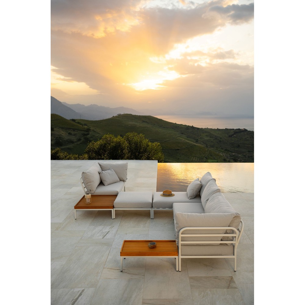 Level de Houe est une collection de mobilier d'extérieur comprenant 2 modules de canapé, une chaise lounge, un pouf et deux tables basses. Chaque élément de la collection peut être utilisé seul ou combiné avec les autres éléments de la gamme. Vous pourrez ainsi créer un salon d'extérieur modulable en adéquation parfaite avec vos envies ! Les structures design, ergonomiques et épurées des modules contrastent à merveille avec les coussins moelleux et chaleureux.