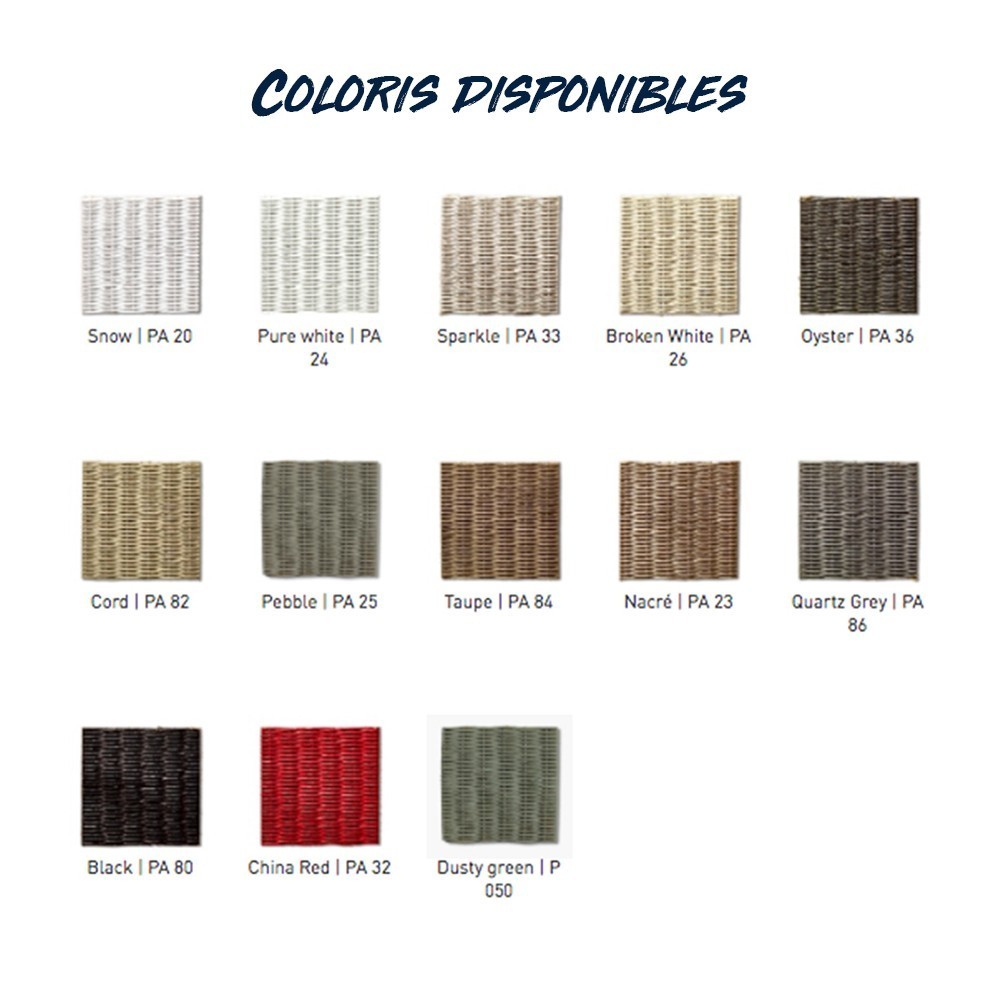 Sur Moodntone, choisissez à la commande la couleur du tressage Lloyd Loom de votre table d'appoint Avignon, et ajoutez-y si vous le souhaitez un beau plateau de verre, pour des apéritifs et café en extérieur en toute légèreté.