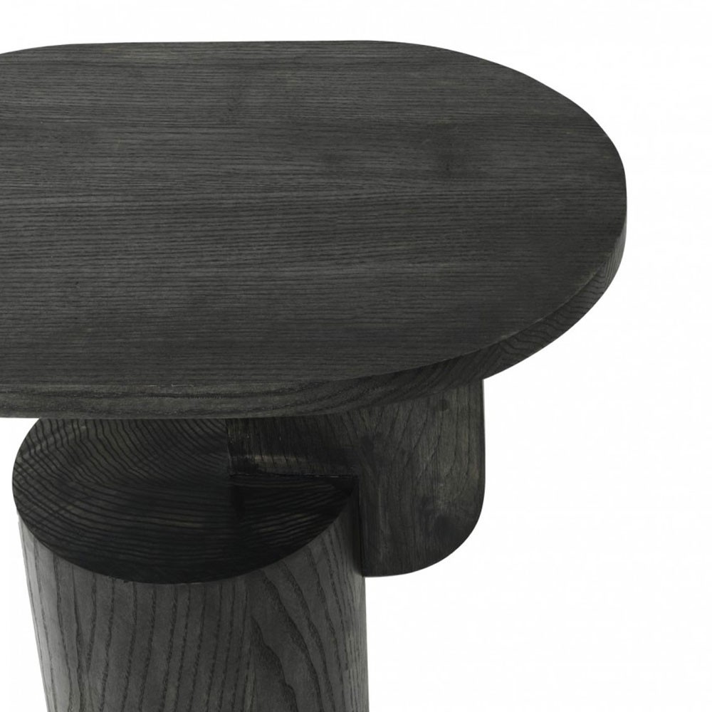 Fabriqué à partir de frêne massif, ce modèle forme une table d'appoint robuste et sculpturale. Il exprime la rencontre de la base lourde du cylindre et de la partie supérieure ovale légère, qui semble flotter sur le petit joint géométrique. Insert sera une œuvre d'art subtile dans votre maison, et sa petite taille la rend parfaite pour les pièces de toutes tailles.
