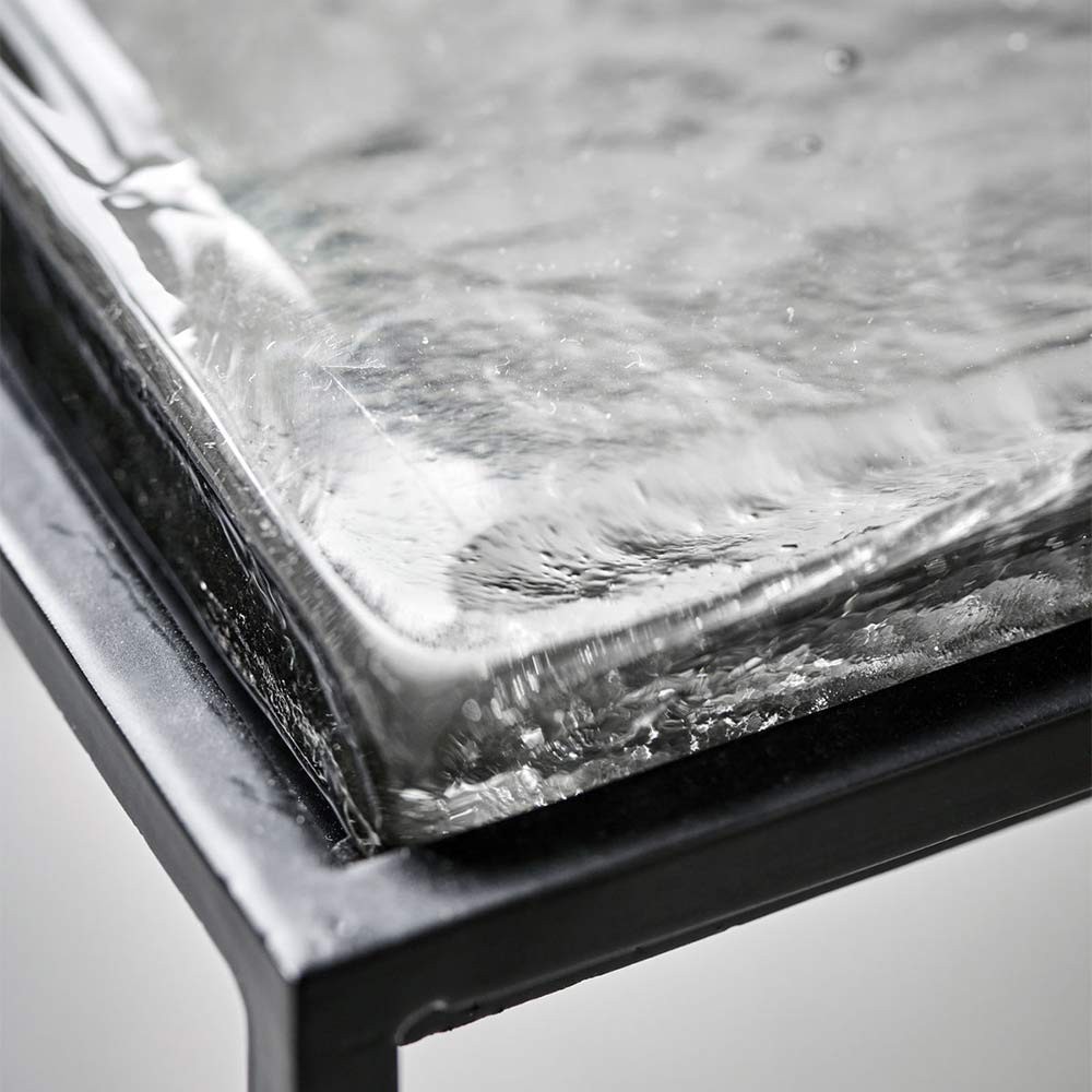 Rehaussez votre décor avec cette table d'appoint exquise, fabriquée à la main avec un plateau en verre marbré dynamique et un cadre en fer élégant.
