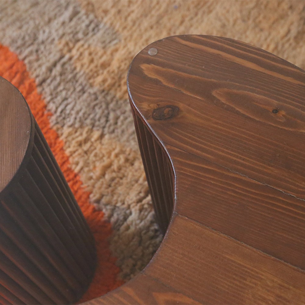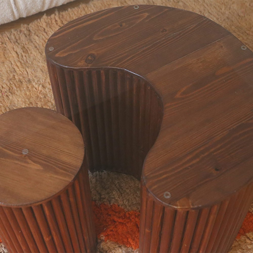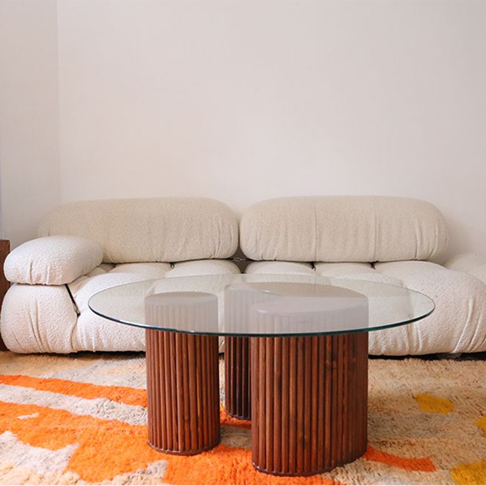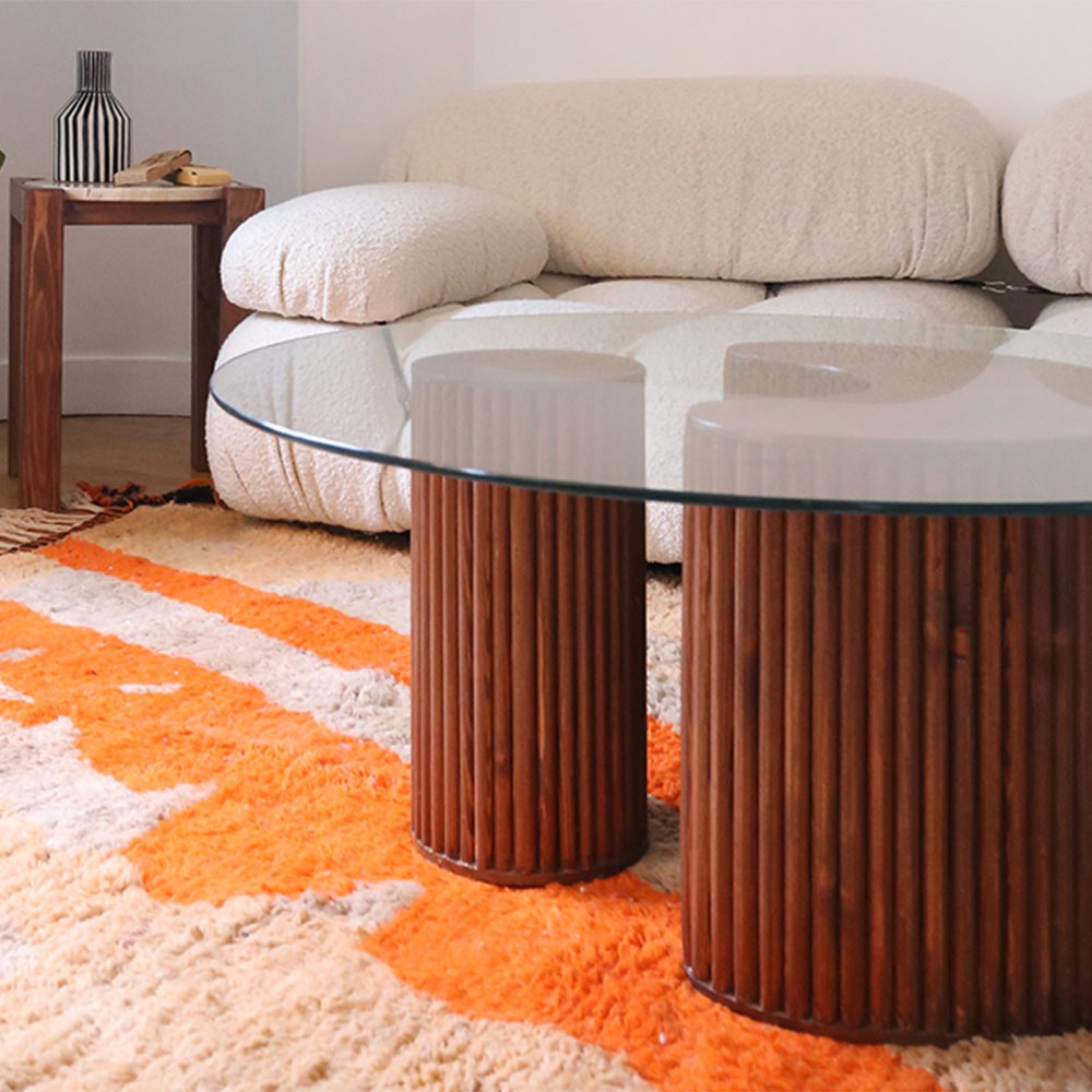 Découvrez la table basse de Them en verre et bois de sapin rouge designée par Marion la fondatrice de THEM et confectionnée de façon 100% artisanale au Maroc.
