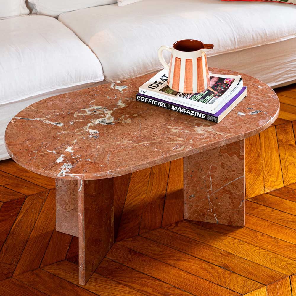 Table basse en marbre designée par Marion la fondatrice de Them et confectionnée de façon 100% artisanale au Maroc dans l’un de nos talentueux ateliers partenaires.