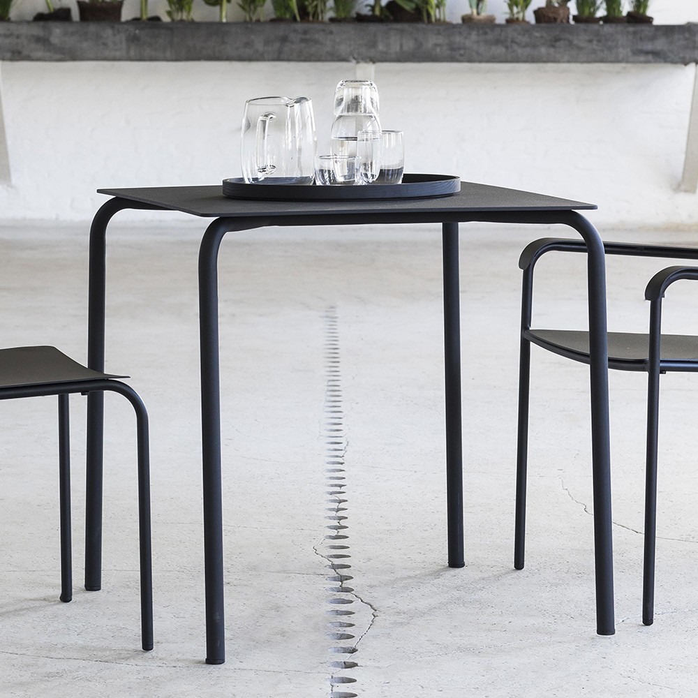 La collection August est fabriquée en aluminium et dotée d’un revêtement thermolaqué disponible en noir ou gris. Les chaises et tables de la collection vous séduiront par leur simplicité et conviennent parfaitement à une utilisation à l'intérieur comme à l’extérieur.