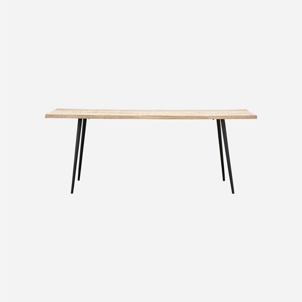 House Doctor a créé une table à manger faite d'une combinaison de bois de manguier clair et de fer. La table crée une atmosphère chaleureuse et personnelle. Parce que le dessus de table est en bois de manguier, il peut être légèrement inégal. Cela fait partie de la conception et donne à la table un attrait robuste et rustique.