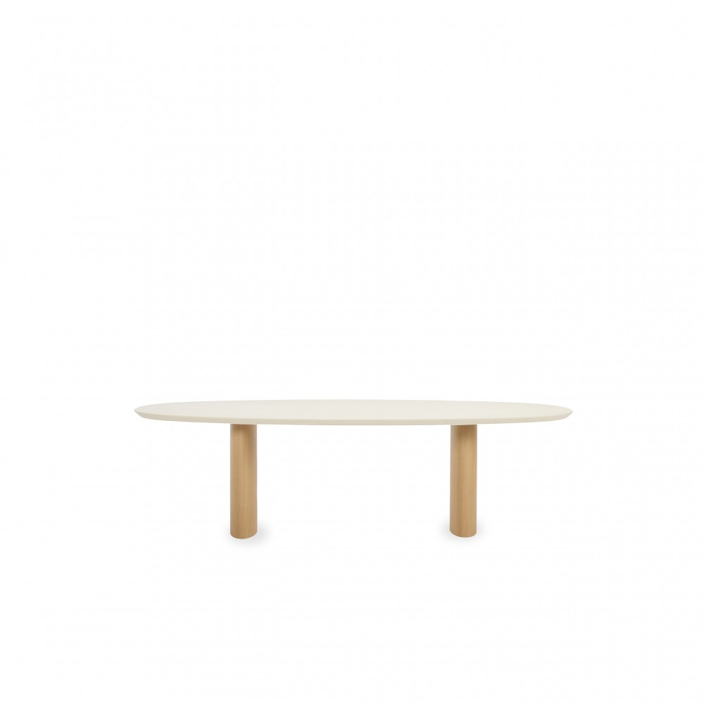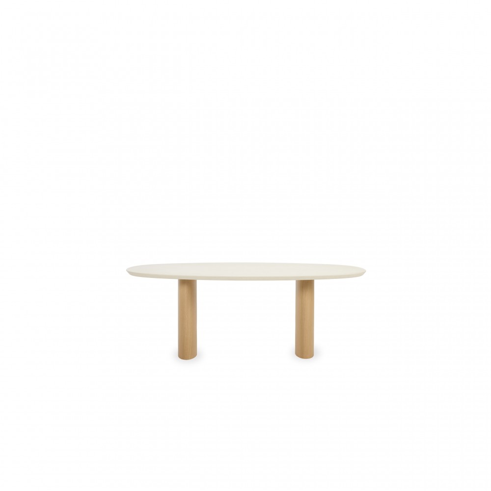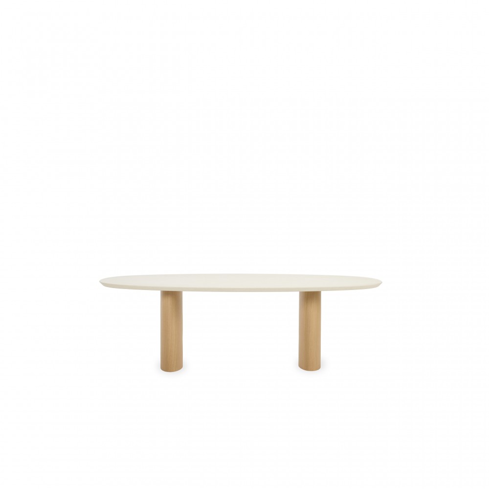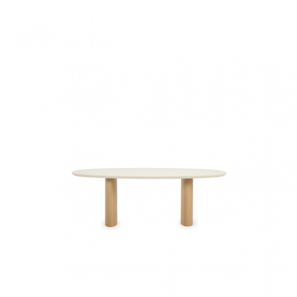 La table à manger ovale Foster séduit par ses lignes douces et son mélange irrésistible de matériaux. Son plateau en forme d’ellipse, fini avec un enduit minéral appliqué à la main, allie allure sculpturale et délicatesse. Aucune table n’est identique : chaque pièce est un jeu unique de textures et de nuances. Les pieds en chêne naturel apportent une chaleur terrienne et contrastent magnifiquement avec le caractère affirmé du plateau. Foster n’est pas une simple table – c’est le cœur battant de votre intérieur.