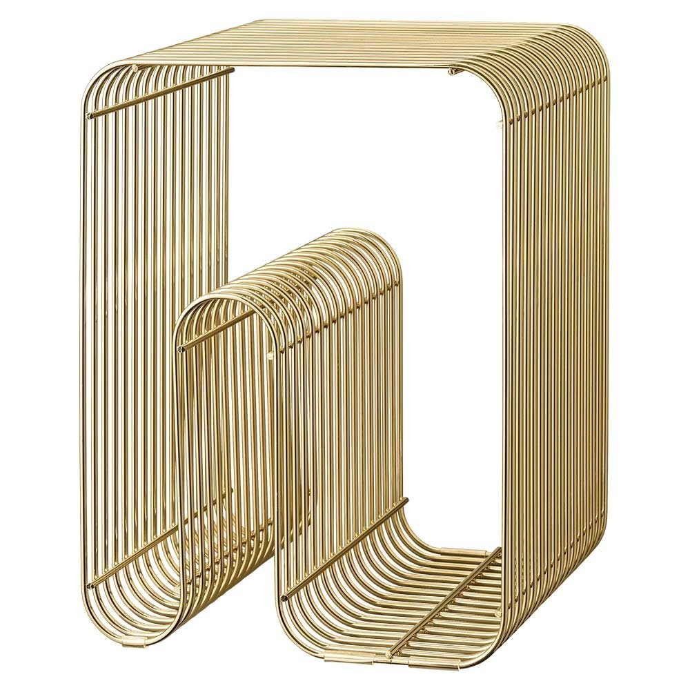 Dans un style Art Déco, le tabouret Curva or est une véritable oeuvre d'art. Ses tiges de fer dansent pour former un magnifique objet qui occupe l'espace avec élégance et raffinement. Les formes arrondies et filaires sont le propre de la collection Curva par AYTM.