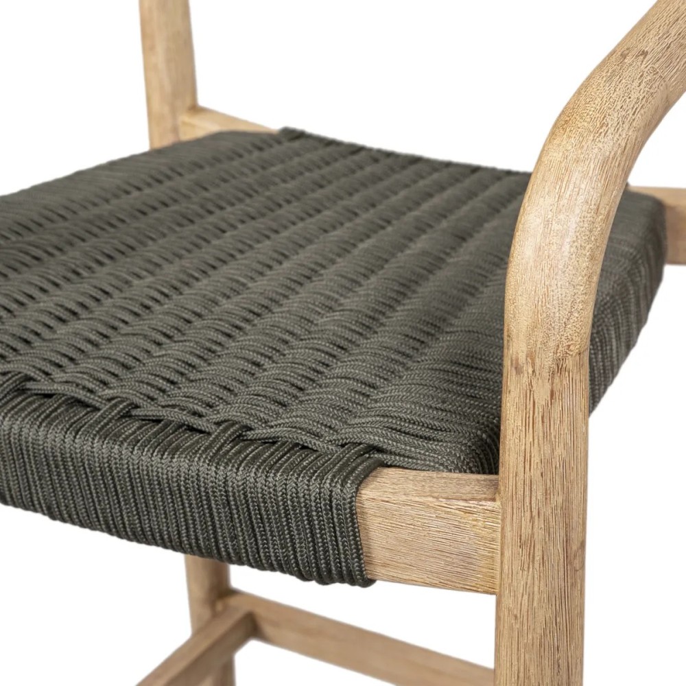 Les pieds et le dossier en eucalyptus, un bois robuste et durable, lui confèrent un caractère authentique et élégant.