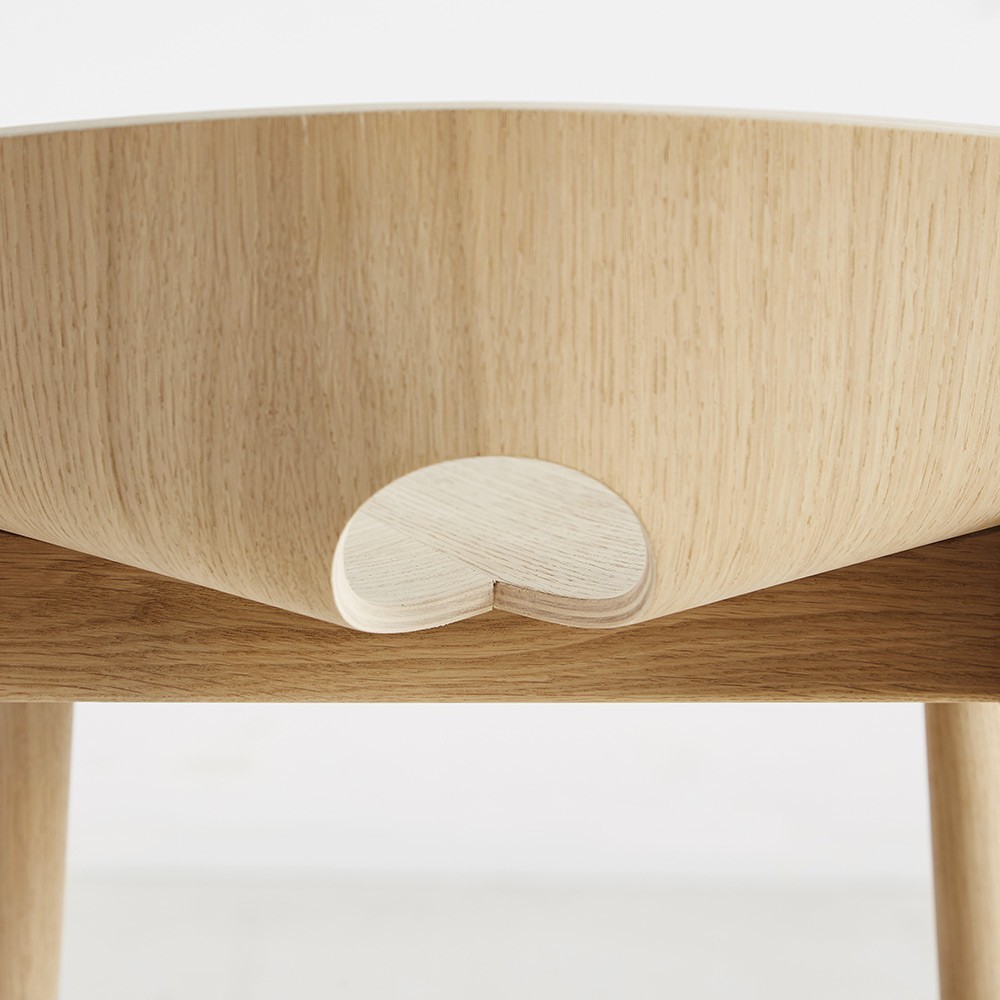 La série Mono est le résultat d'une pensée non traditionnelle. L’inspiration principale de la conception est la possibilité de plier le bois comme une feuille de papier en une forme de cône. La collection Mono est fabriquée avec un matériau en bois révolutionnaire Grada, qui lui permet de garder son design simple et élégant. Le chevauchement de la construction du siège n’aurait pas été possible avec les techniques de stratifications classiques.