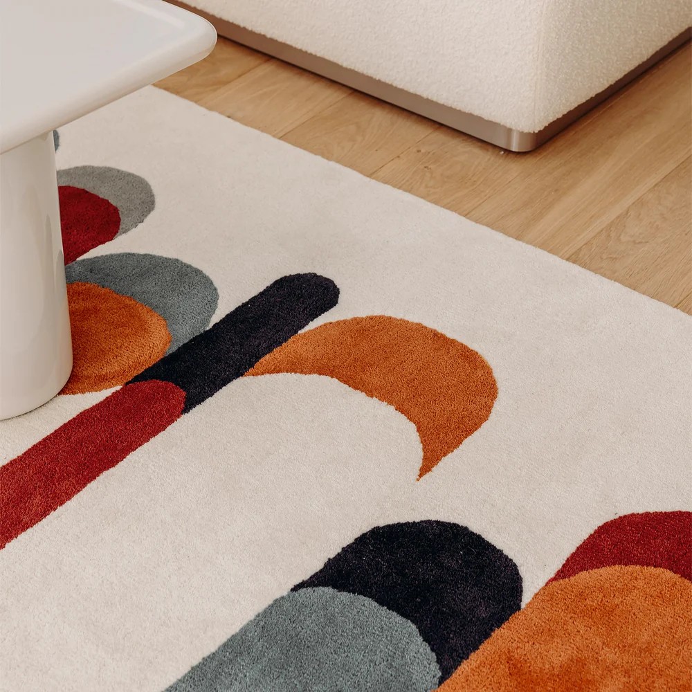 Les couleurs chaudes de ce tapis, rouge, orange, rose et beige, égayeront votre intérieur. Sa fabrication en laine de Nouvelle-Zélande tuftée à la main garantit une qualité durable.