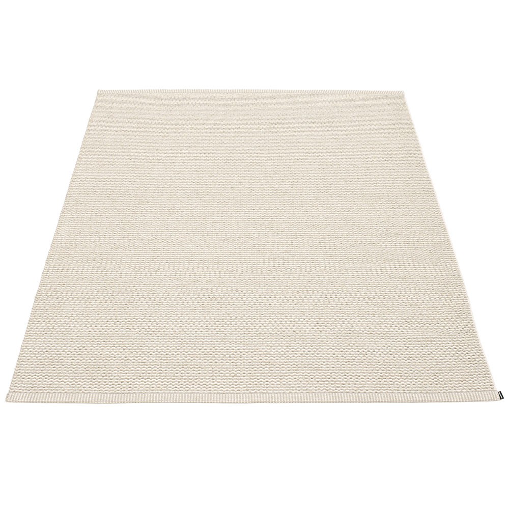 Produit à Dalarna, Suède. Tissé sur un métier à tisser traditionnel en utilisant des navettes en bois. Un tapis en PVC très pratique et facile d’entretien manufacturé en Suède. Rubans de plastique pressés pour une plus grande solidité et durabilité du produit avec le logo Pappelina pressé sur les deux bords.
