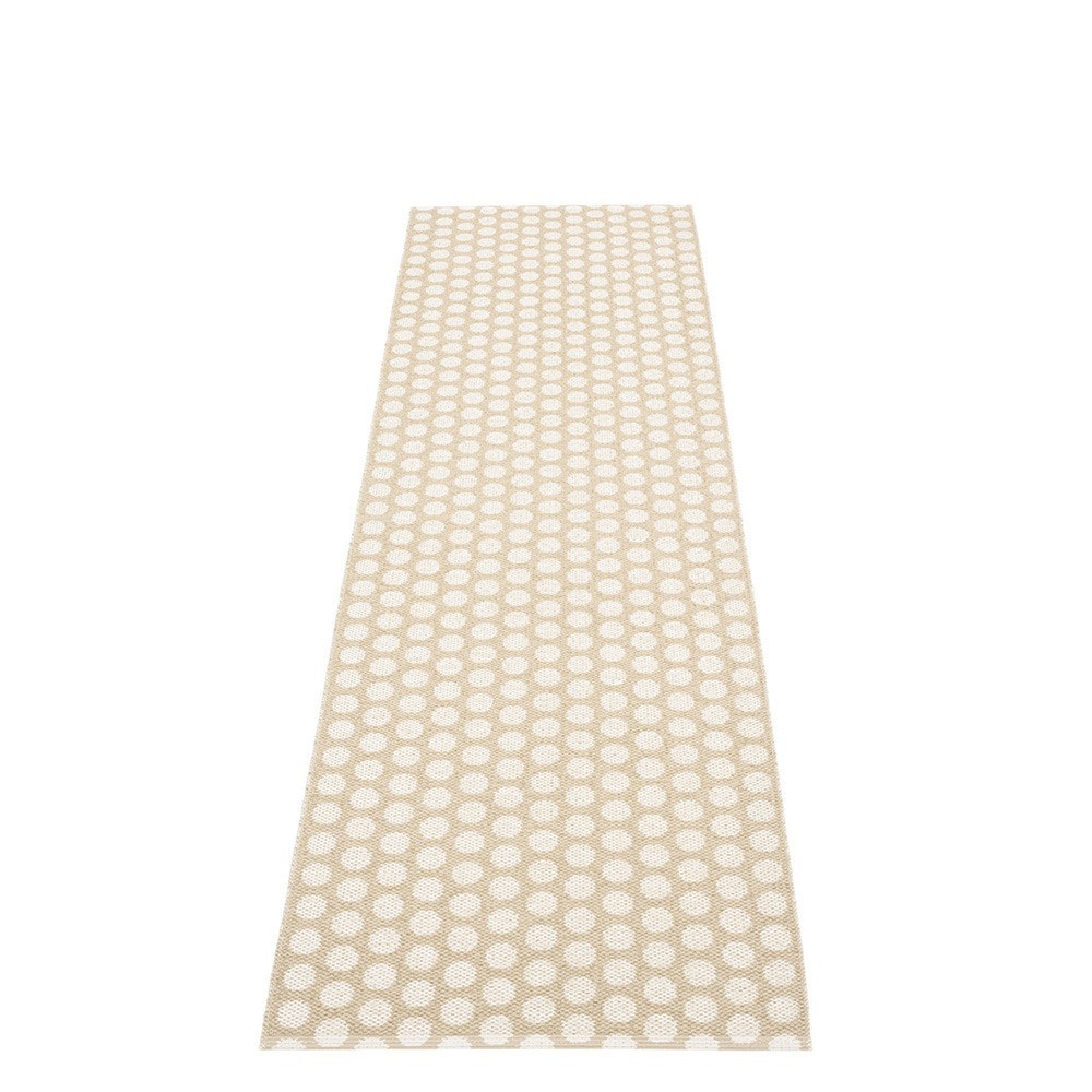 Produit en suède, le tapis Noa est en plastique pour une utilisation intérieure et extérieure. Ses bords sont soudés par des bandes de renfort pour une résistance élevée. Le tapis est tissé de bandelettes en plastique sans phtalate par Gislaved Folie AB sur un métier à tisser traditionnel. Il est disponible en plusieurs coloris et en plusieurs dimensions.