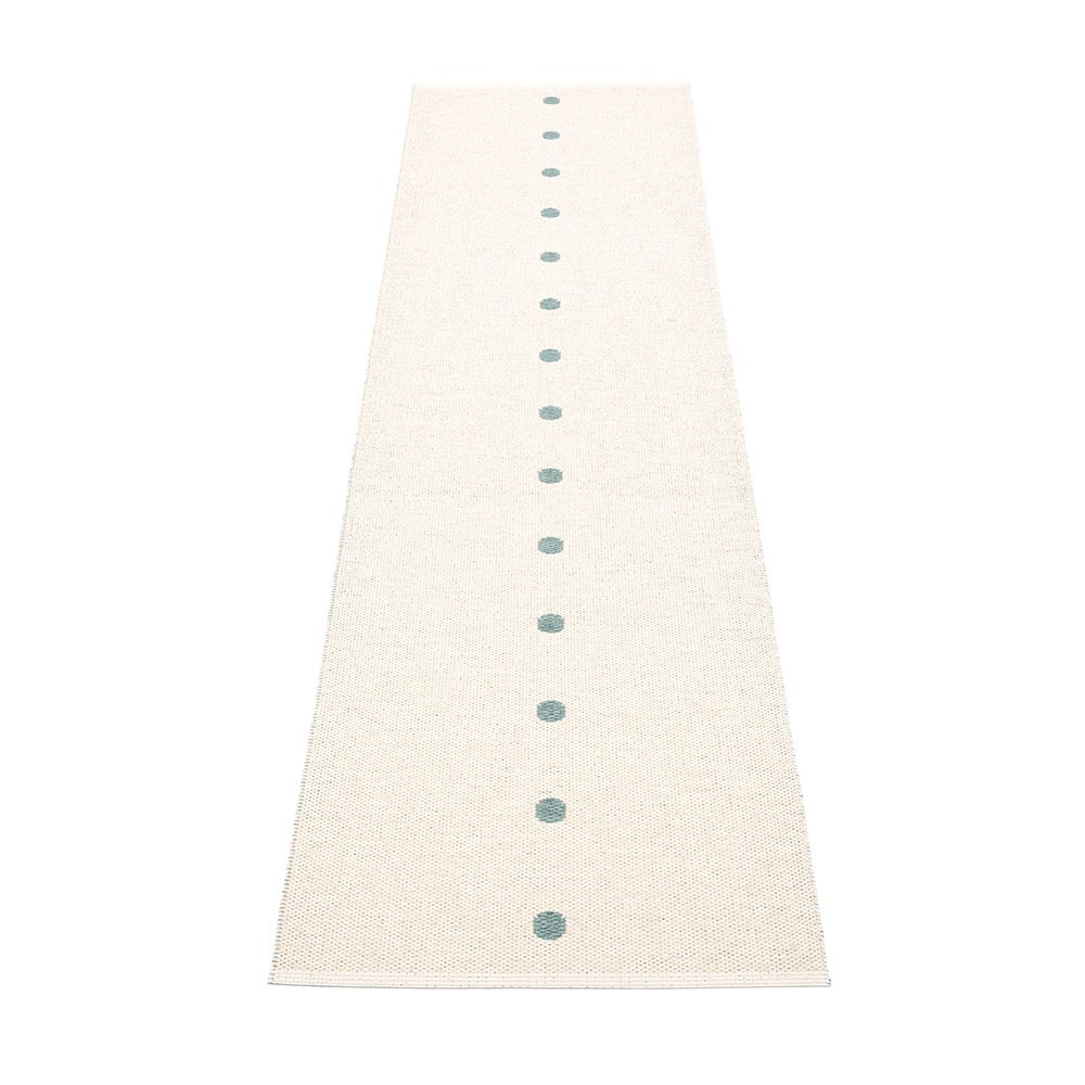 Produit à Dalarna, Suède. Tissé sur un métier à tisser traditionnel en utilisant des navettes en bois. Un tapis en PVC très pratique et facile d’entretien manufacturé en Suède. Rubans de plastique pressés pour une plus grande solidité et durabilité du produit avec le logo Pappelina pressé sur les deux bords.