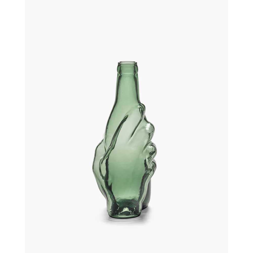 Issue de la collection Les Objets Mouleversants par Wouters & Hendrix, cette carafe au design surréaliste ne manquera pas de susciter la curiosité. Sa forme audacieuse, rehaussée d’une main sculpturale fusionnée au verre, mêle avec justesse humour et élégance. Une pièce forte qui apporte une touche artistique à toute table, disponible en version transparente ou en vert émeraude.