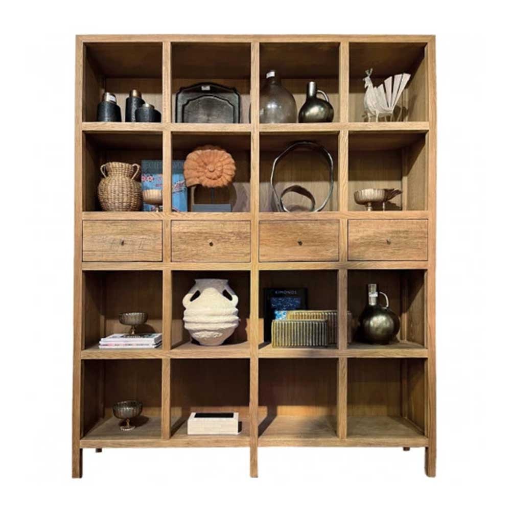 Ispirata al carattere grezzo dei vecchi banchi da lavoro di campagna, la libreria MARCELLE affascina con il calore del suo rovere chiaro recuperato. Il legno naturalmente strutturato e l'assemblaggio solido le conferiscono una rara autenticità, rendendola un pezzo senza tempo in grado di valorizzare qualsiasi stile d'interni. Troverà naturalmente il suo posto al centro di un ufficio, di una sala da pranzo o di un soggiorno.