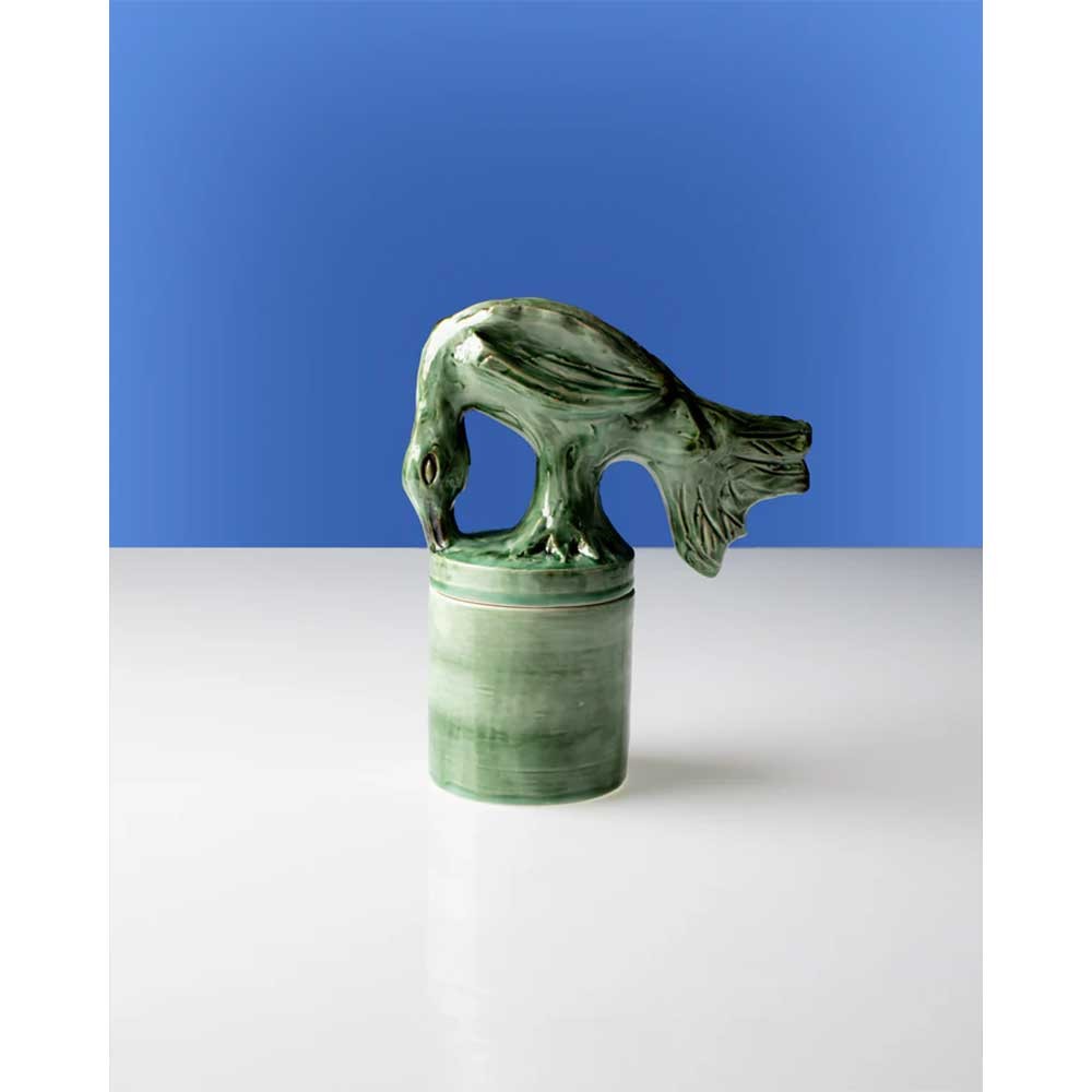 Versata a mano con cera di soia naturale, questa candela combina la tradizione artigianale con i più alti standard di qualità. Viene fornita in un elegante vaso di ceramica con coperchio coordinato. Fedele alla firma dell'artista, questo contenitore si trasforma in un oggetto decorativo unico o in un raffinato contenitore una volta che la candela si è consumata.