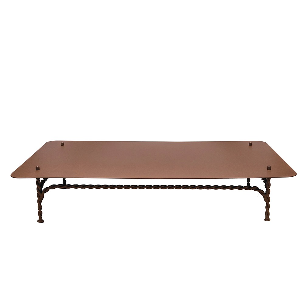 Questo tavolo è disponibile in ferro grezzo, ma può essere progettato anche in ferro marrone, a scelta. Il piano sottile conferisce una leggerezza al tatto che contrasta con il carattere del ferro ritorto.