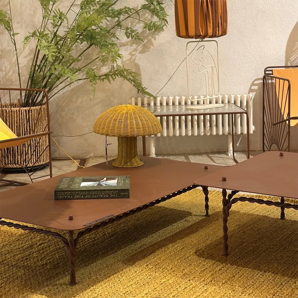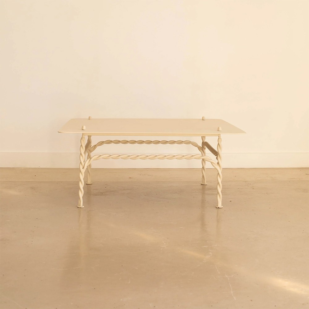 In Honoré amiamo esplorare i materiali e lavorarli in tutte le loro forme. Questa stagione abbiamo scelto di rivisitare il ferro con un tocco originale: gambe ritorte ispirate ai mobili da esterno in ferro battuto degli anni Venti e Cinquanta.