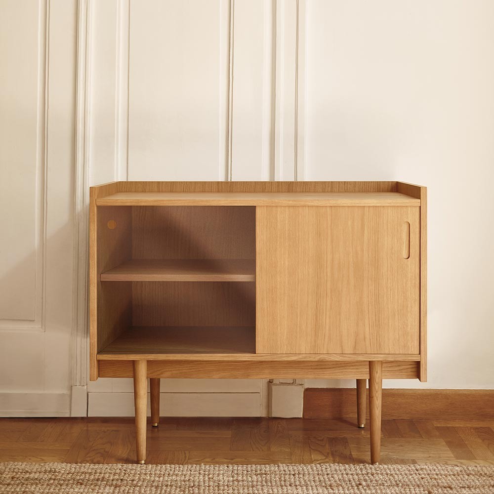 La credenza lunga 1050 è un mobile contenitore in rovere progettato da 366 concept. In un ufficio, in una camera da letto o in un soggiorno, questo pezzo funzionale diventerà la vostra soluzione di archiviazione preferita. Disponibile in diverse finiture di legno, questo mobile dalle linee pulite e dall'aspetto elegante si adatterà perfettamente alla vostra casa. Con i suoi due ampi ripiani e le due ante scorrevoli, questa pratica credenza vi permetterà di riporre oggetti di uso quotidiano, oggetti d'arte, libri e altri soprammobili...