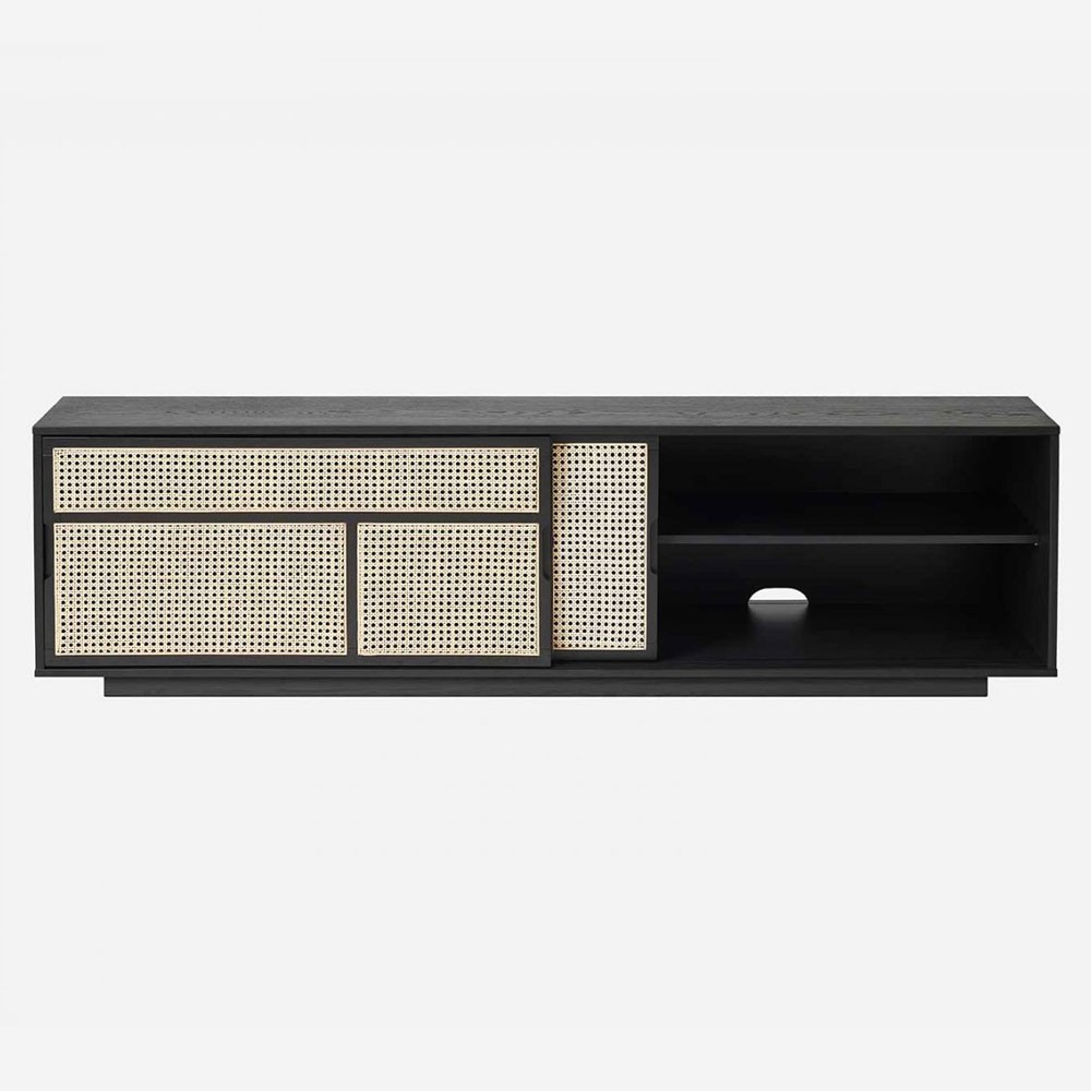 Air è una collezione di madie e contenitori di Mathieu Gustafsson che combina un motivo grafico con una struttura in rovere o frassino intarsiato con canna naturale, donando una sensazione di leggerezza e trasparenza. Il mobile di design Air di Design House Stockholm può essere utilizzato come divisorio indipendente o posizionato contro un muro.