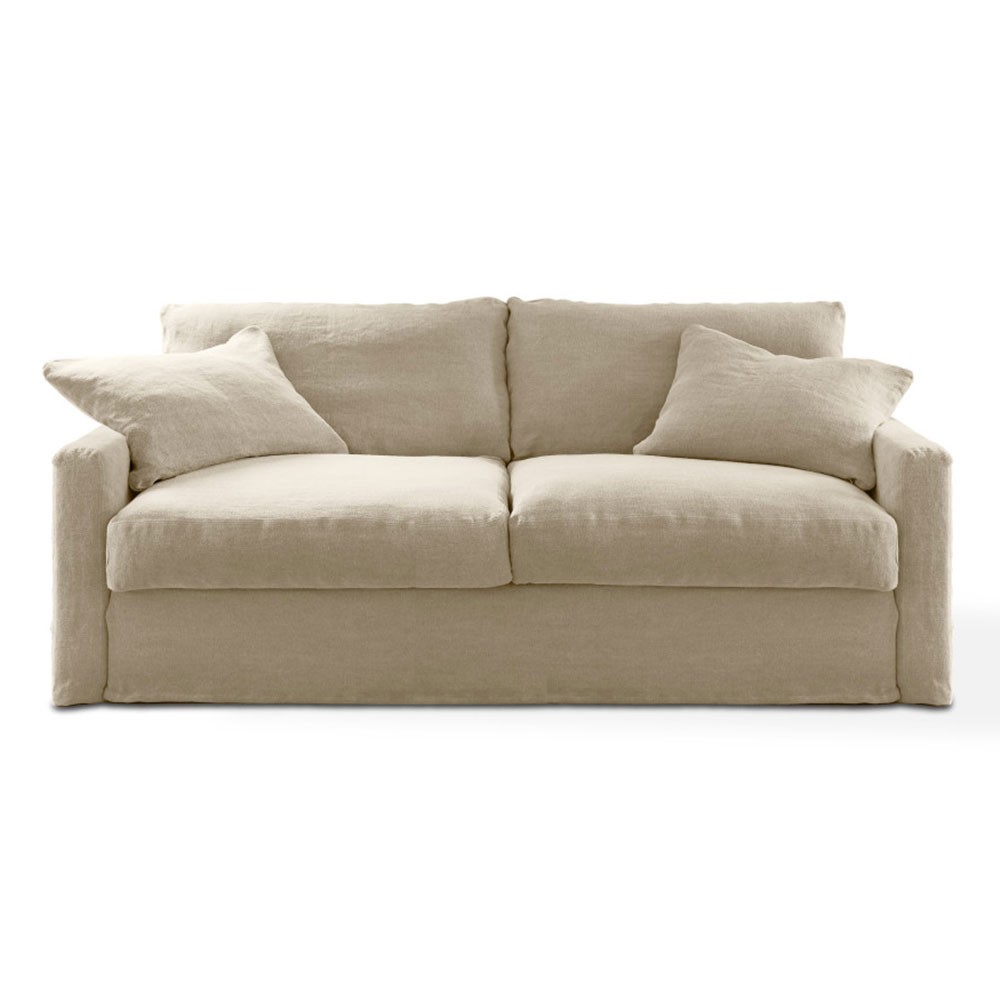 Scoprite il divano letto Bidart in lino, che unisce lo stile bohémien chic a un look di design imbattibile. Vi piacerà accoccolarvi sui suoi grandi cuscini in piuma che garantiscono un comfort ottimale. Se volete riposare, il suo materasso spesso ed ergonomico vi garantirà il migliore dei pisolini. Questo divano è interamente realizzato in Francia e porterà un'aria di altrove nella vostra casa e un tocco di mare. Si abbina perfettamente a materiali naturali come il legno e la juta. Il divano Bidart è disponibile in diverse finiture di tessuto: naturale, ghiaia, bianco, verde oliva... troverete sicuramente il colore che si abbina perfettamente ai vostri interni. I cuscini della seduta e dello schienale sono rimovibili per una facile manutenzione.