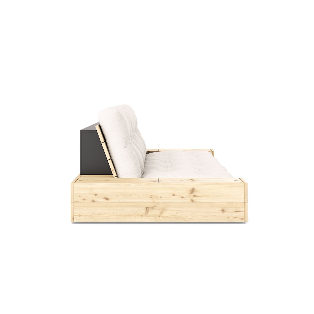 La struttura del letto, realizzata in pino certificato FSC® , e lo spesso materasso futon imbottito garantiscono il comfort sia da seduti che da sdraiati, unendo la funzionalità a un tocco di lusso.