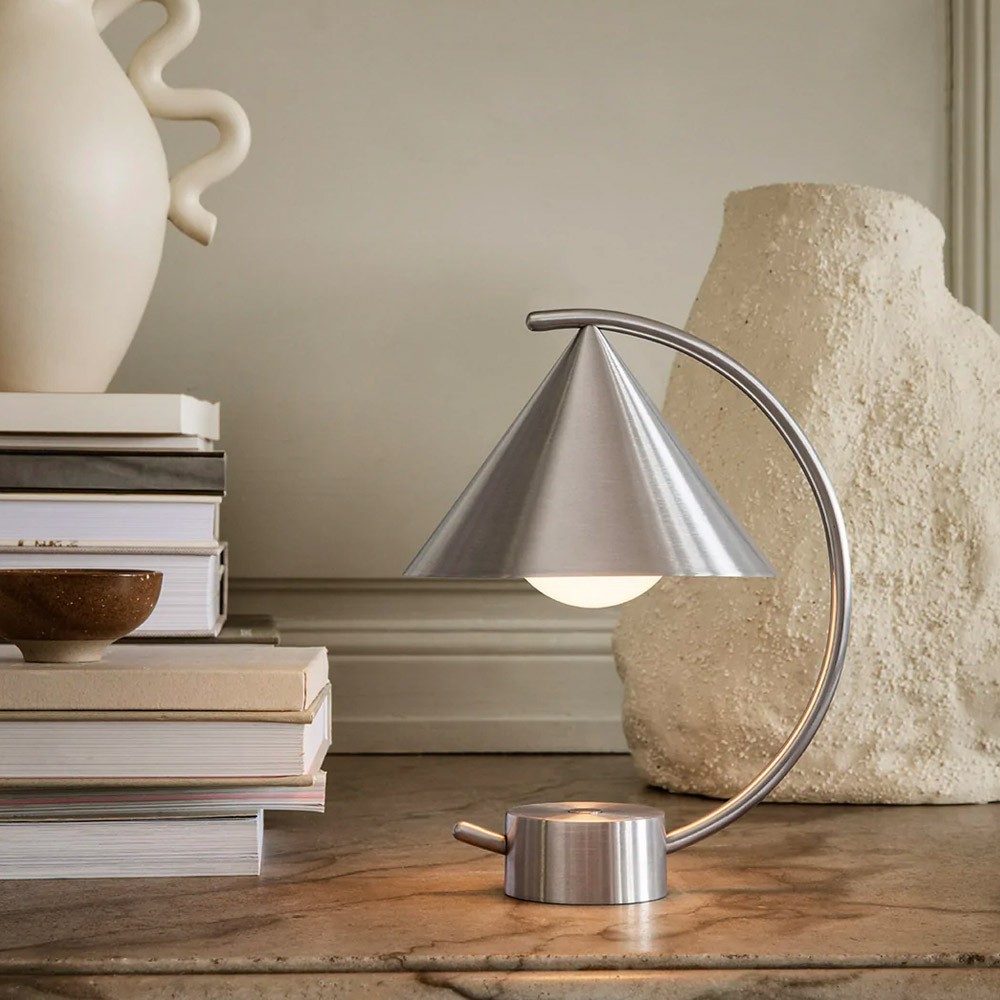 La lampada Meridian è una soluzione di illuminazione portatile che può essere adattata a diverse situazioni. La sua forma geometrica e la composizione in acciaio spazzolato fanno parte di un'estetica contemporanea e di grande impatto. Ferm Living ha collaborato con lo studio Regular Company per creare questo oggetto di design funzionale. Con questa lampada portatile da 12 ore non dovrete più preoccuparvi dell'illuminazione.