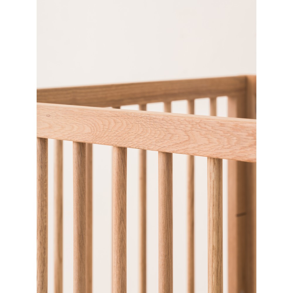 Il lettino Pure in legno massello di quercia è evolutivo e accompagnerà il vostro bambino durante tutta la sua crescita con stile. Grazie al kit evolutivo, potrete dare nuova vita al lettino Pure trasformandolo in un letto junior.