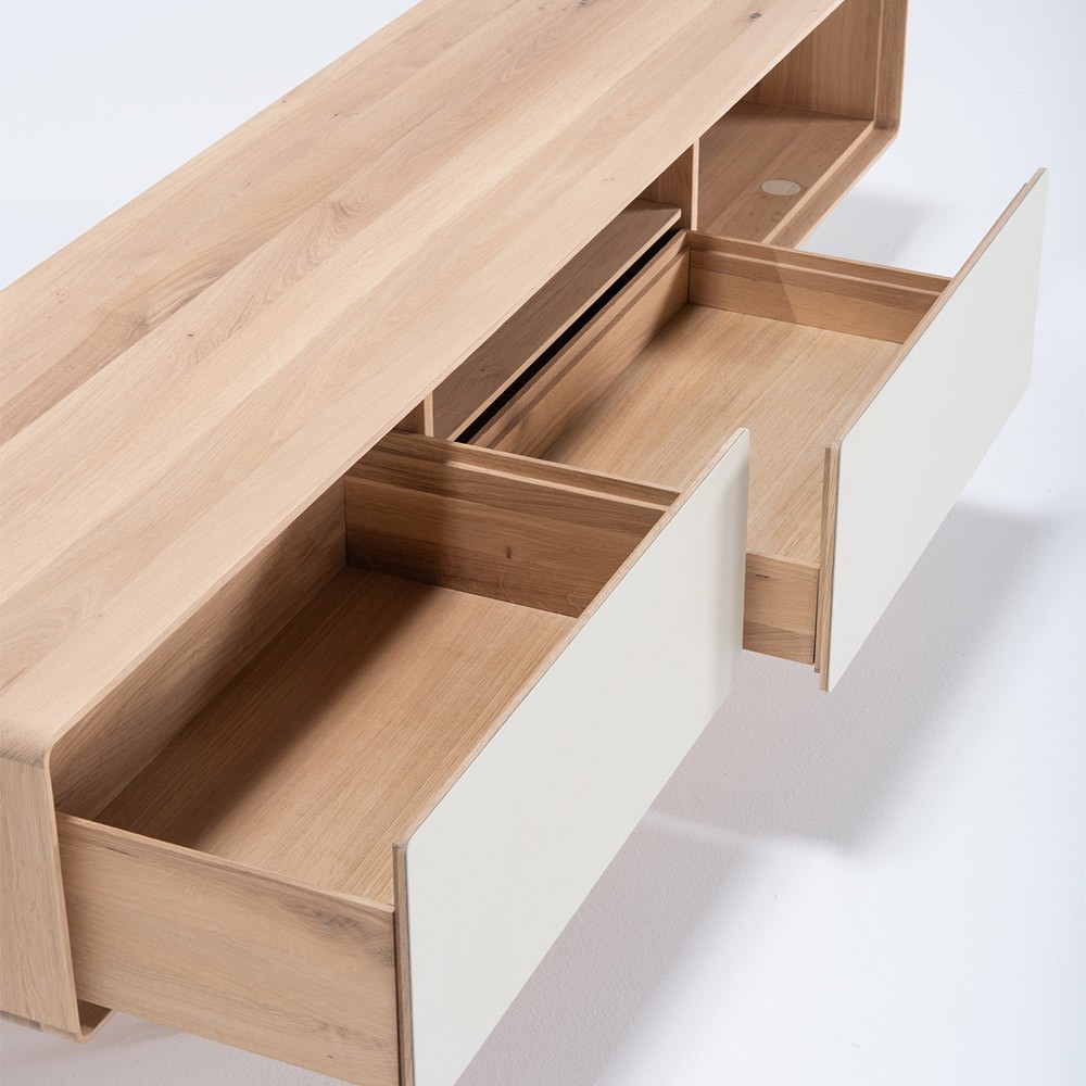La gamma di contenitori Fina di Gazzda non ha finito di sorprendervi! Lasciati tentare dal design minimalista e raffinato del mobile TV 200 Fina. Il suo colore rovere e crema porterà morbidezza e autenticità al tuo salotto. Tanto pratico quanto estetico, questo mobile TV ti offre molte possibilità di archiviazione, ideale per riporre telecomandi, cavi, console e videogiochi, ... Le sue tacche ti permetteranno di nascondere tutti i tuoi cavi! Disponibile anche nella versione rovere e nero e nella versione da 160 cm.