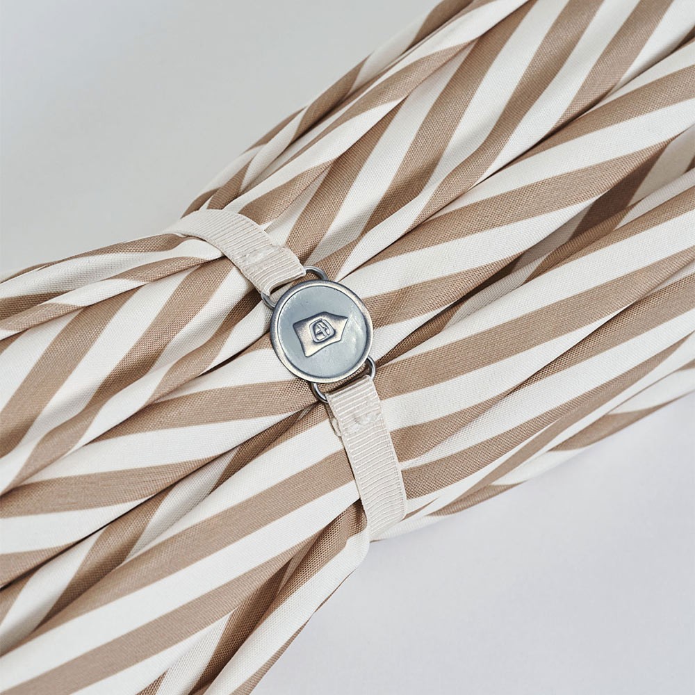 Con le sue strisce bianche e color sabbia e le frange lunghe e spesse, l'ombrellone Umbra di House Doctor conferisce al vostro spazio esterno un look elegante con un innegabile tocco vintage. L'asta in legno può essere smontata, in modo da poter riporre l'ombrellone da giardino nella borsa per una facile conservazione. Base non inclusa. Diametro del palo: 32 m