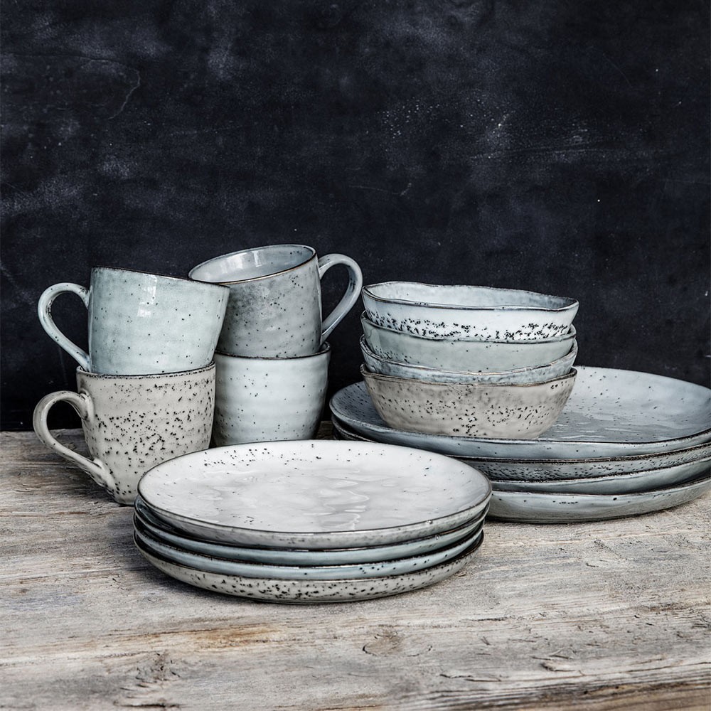 Rustic è un piatto rustico di House Doctor dal moderno look nordico, realizzato a mano in ceramica. Lo smalto rustico è conservato nei toni del grigio e del blu, aggiungendo vivacità e personalità alla stanza.